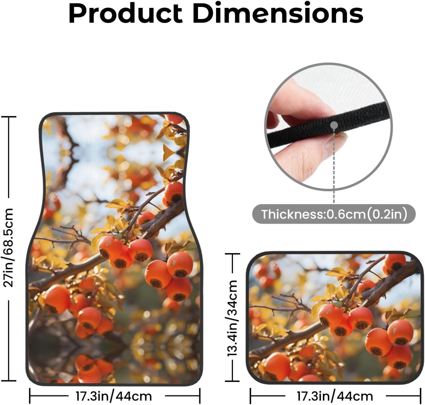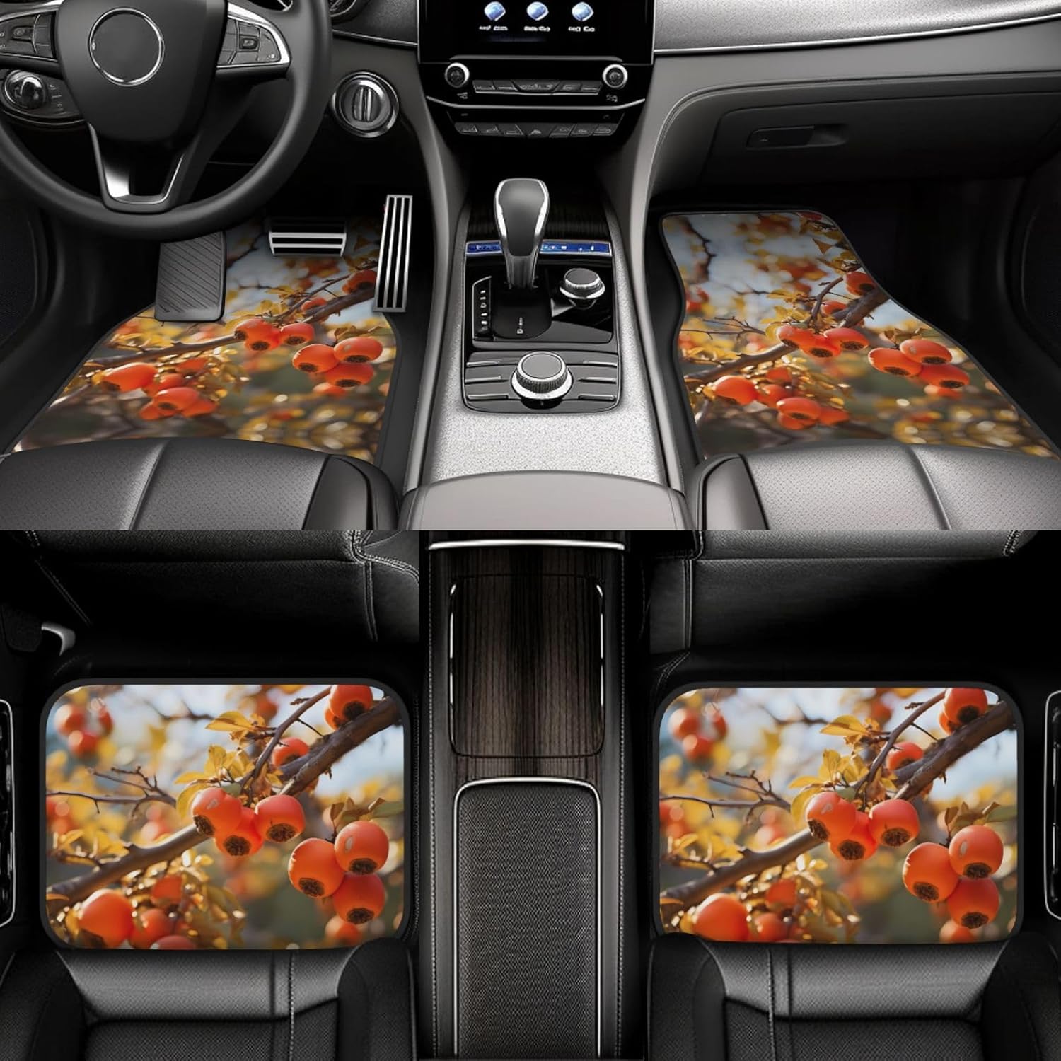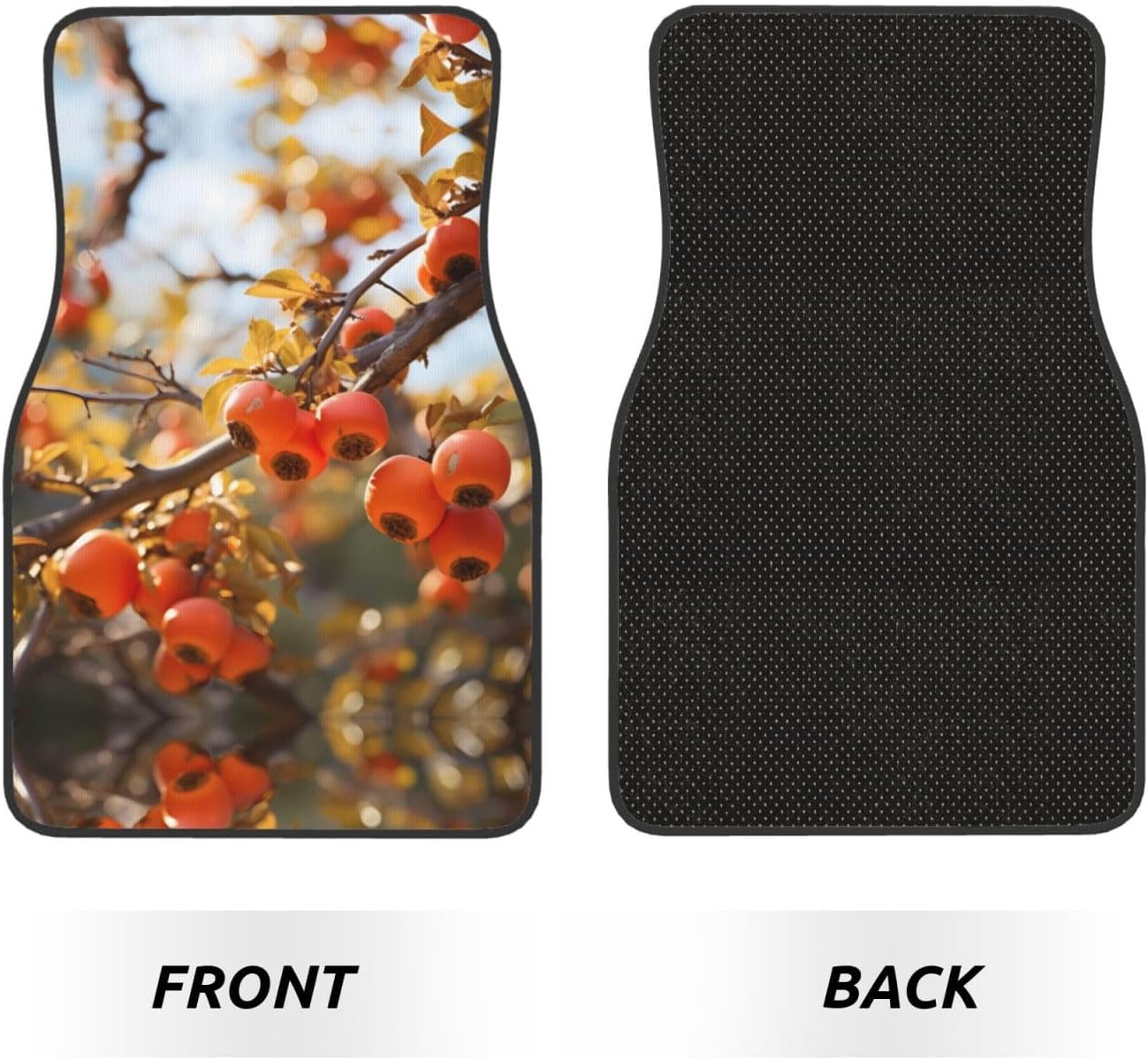 Add a touch of elegance to your car. Our persimmon persimmon printed car mats are light-resistant and stay colorful even in the hot sun. They are tightly woven, soft and firm to the touch, easy to clean, and can be easily rinsed to remove stains and keep your car clean. The drop-molding process on the bottom not only prevents dust from entering, but also simplifies the installation process. The non-slip design ensures stability in any driving situation, ensuring your safe driving. Suitable for a variety of models, whether it is a car, truck or van, this mat can perfectly blend with your interior style.