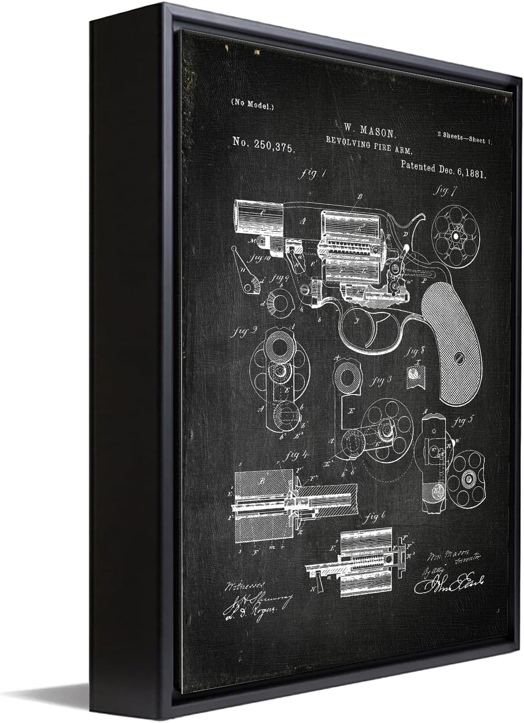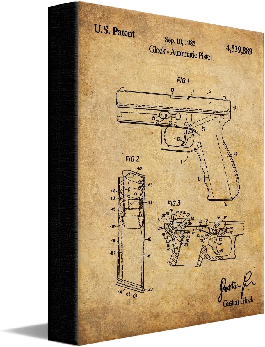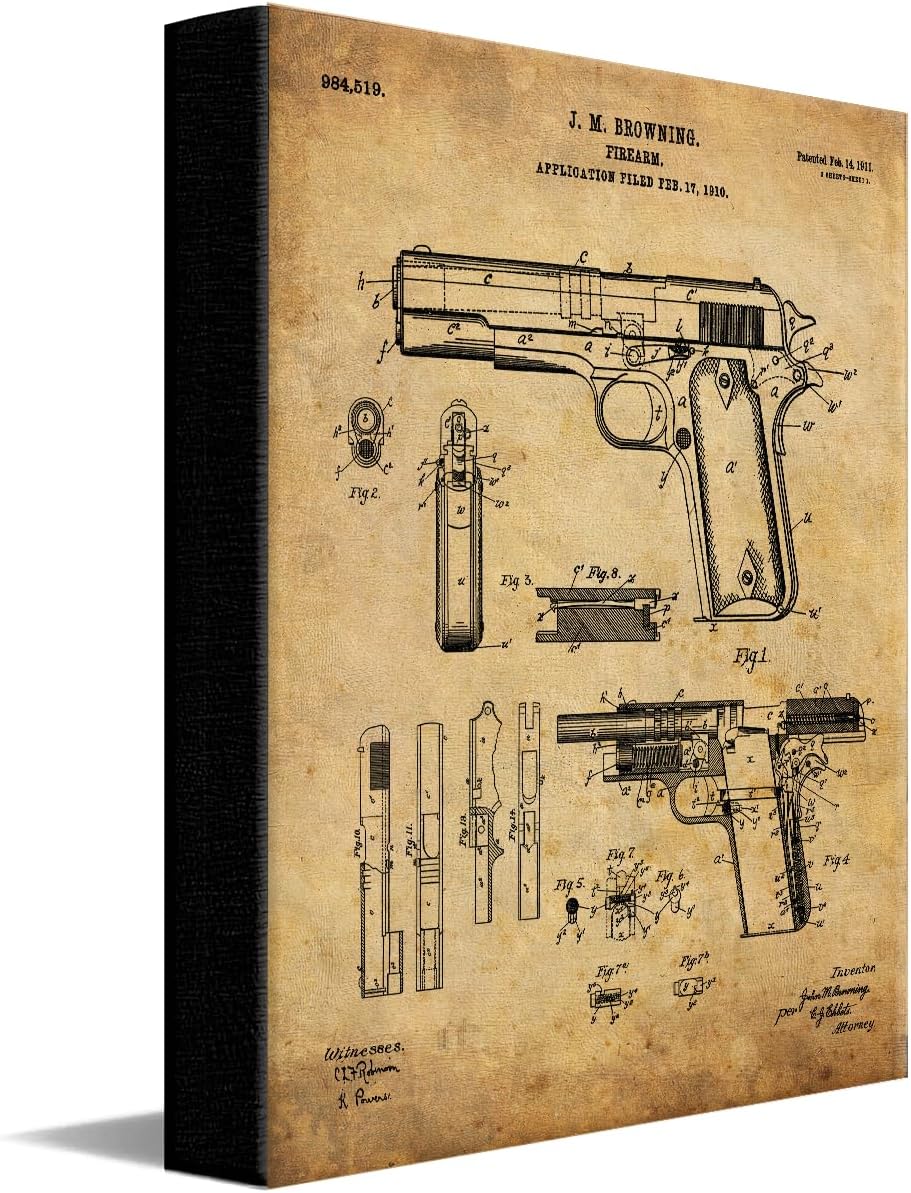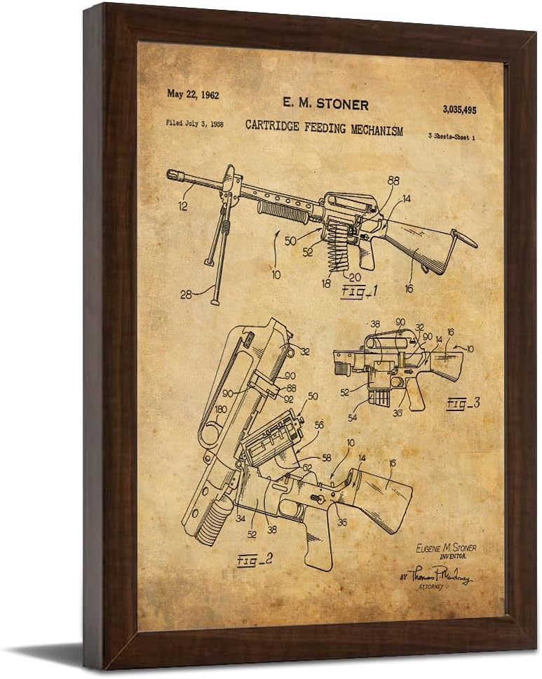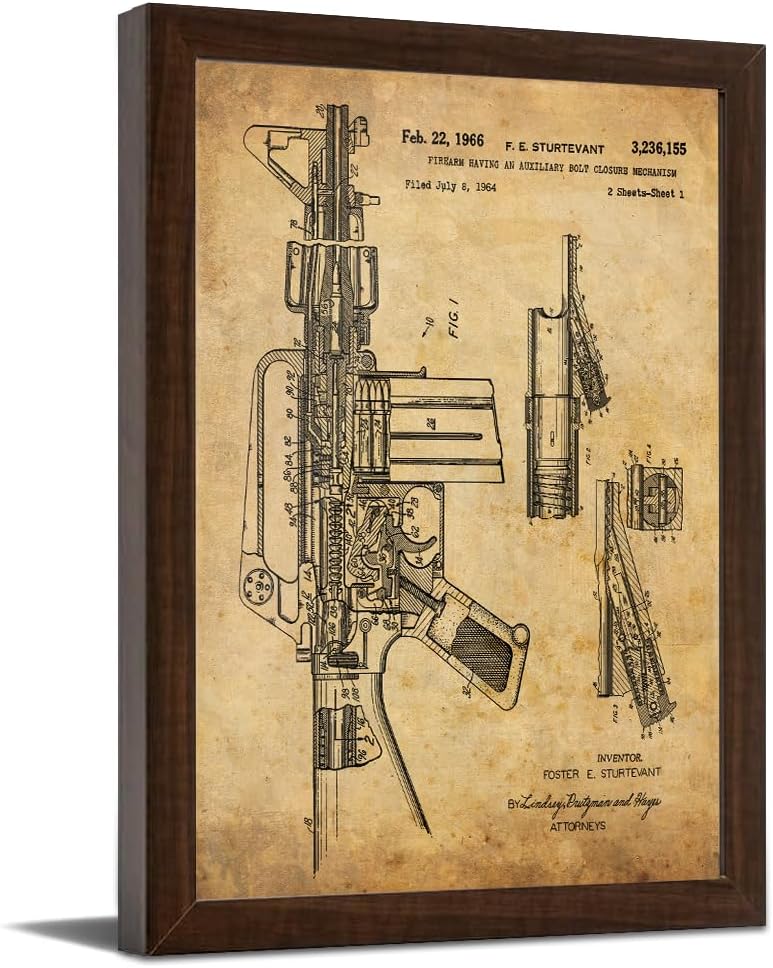 | Special Features | Patent Drawing Artwork, Vintage Paper Material, Contoured Wood Grain Frame with Glass Finish |
