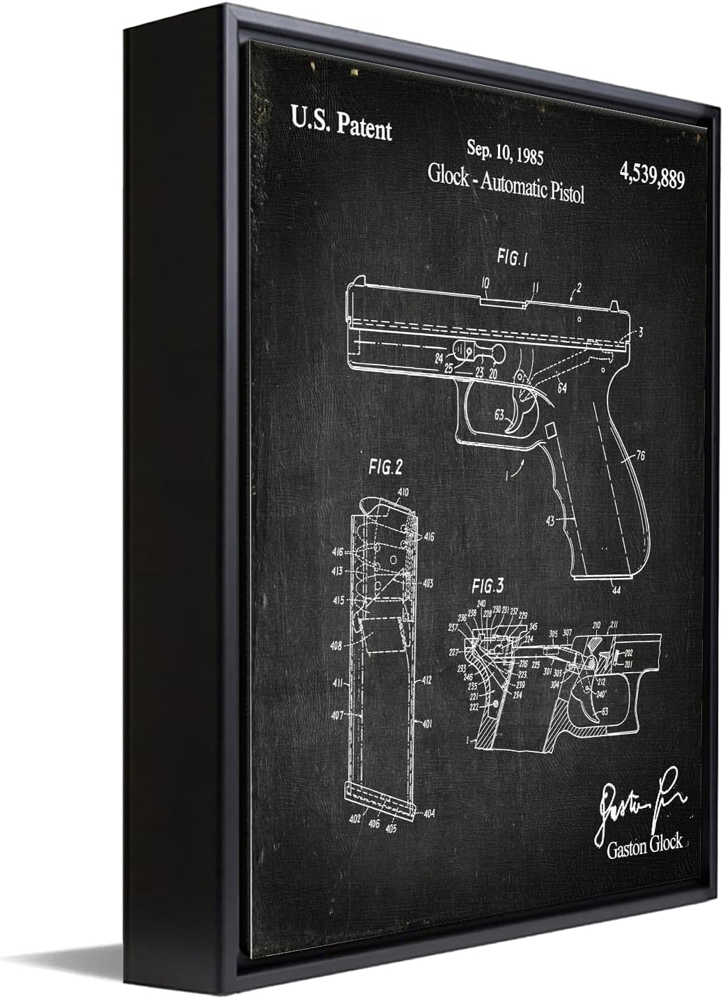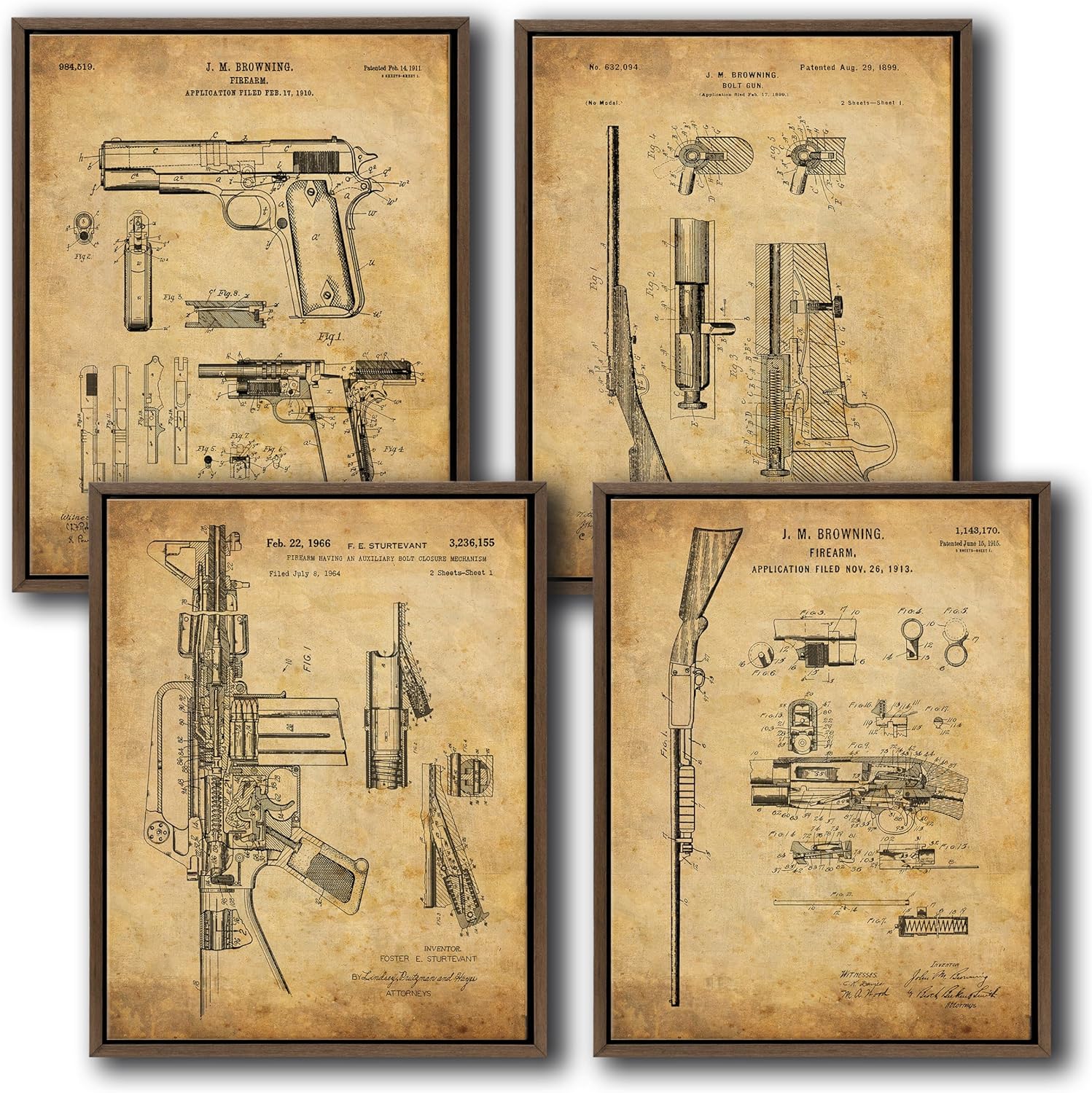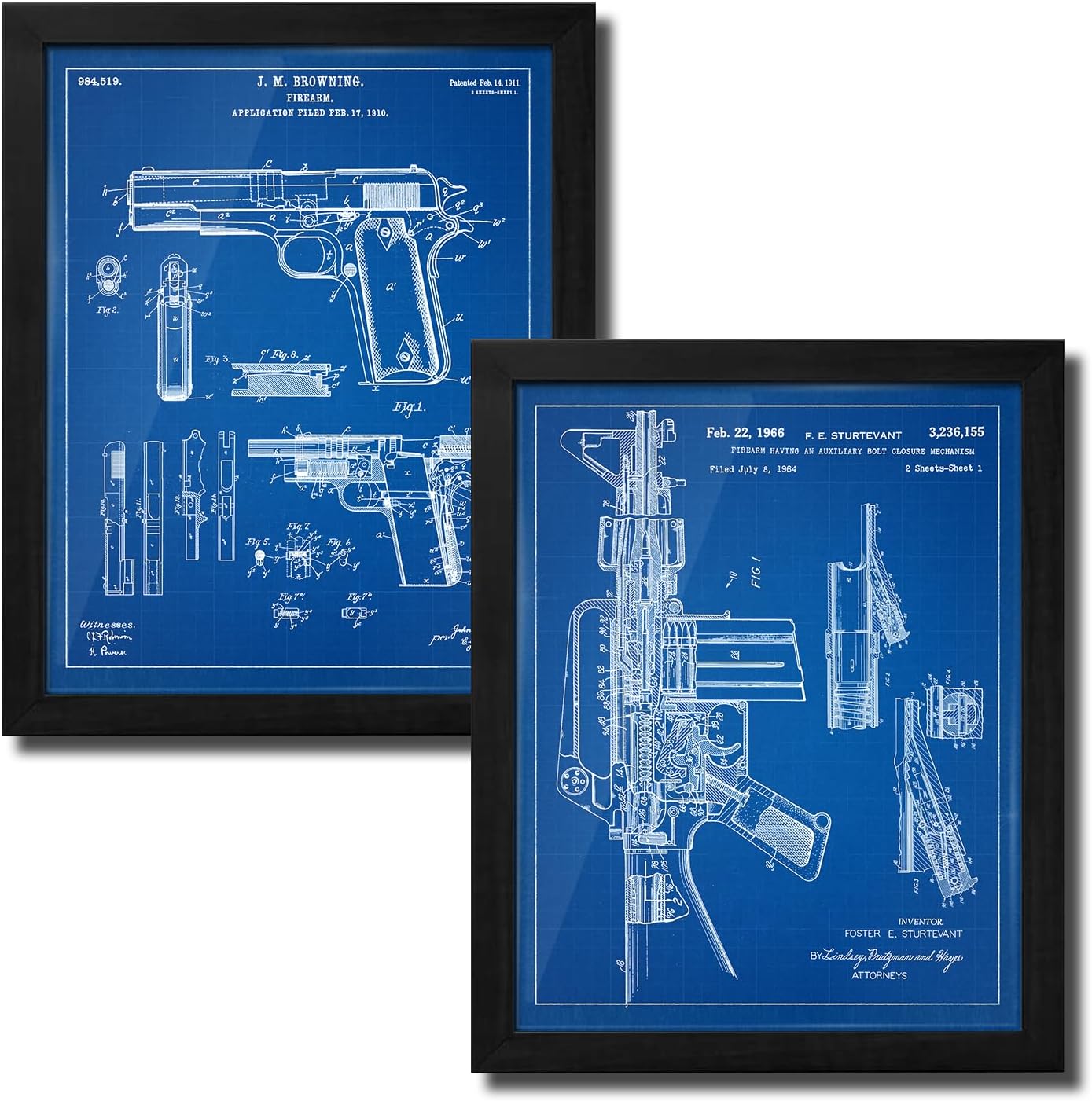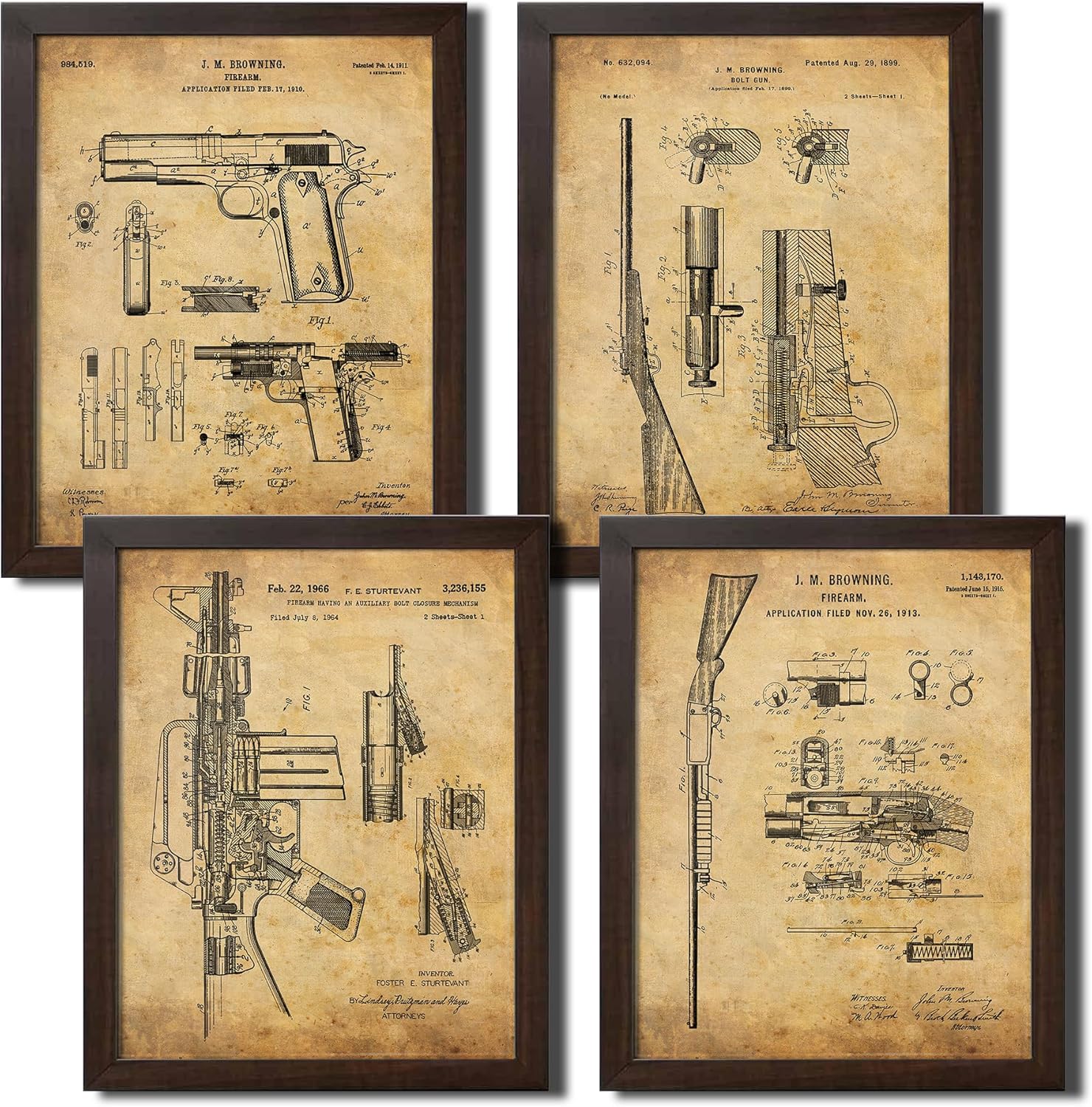 | Special Features | Patent Drawing Artwork, Vintage Paper Material, Contoured Wood Grain Frame with Glass Finish |
