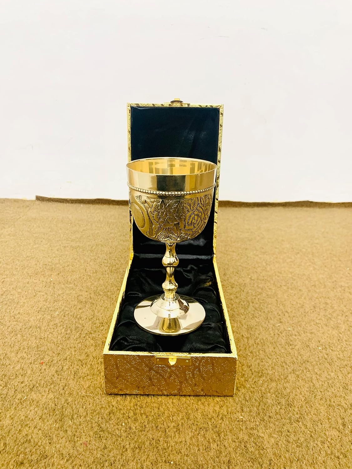 Size : 6 Inch Hand crafted and made of 100% Brass Engraved all over. Fine hand craftsmanship with excellent detailing. Vintage Handmade Brass King's Royal Chalice Embossed Cup 6 inch Goblet Best Gothic Theme Game of throne theme gift for your best friend and someone special and loved once. Boast to health, happiness and everything your family has to be grateful for using these gorgeous wine glasses crafted by hand and polished to a gleaming finish Celebrate a loved one's new beginning when you give our embossed brass goblets featuring lush floral embossing as a wedding, house warming or retirement gift. Crafted from a solid piece of metal with no coating applied and helps keep hot foods stay hot longer, and cool foods stays cool longer