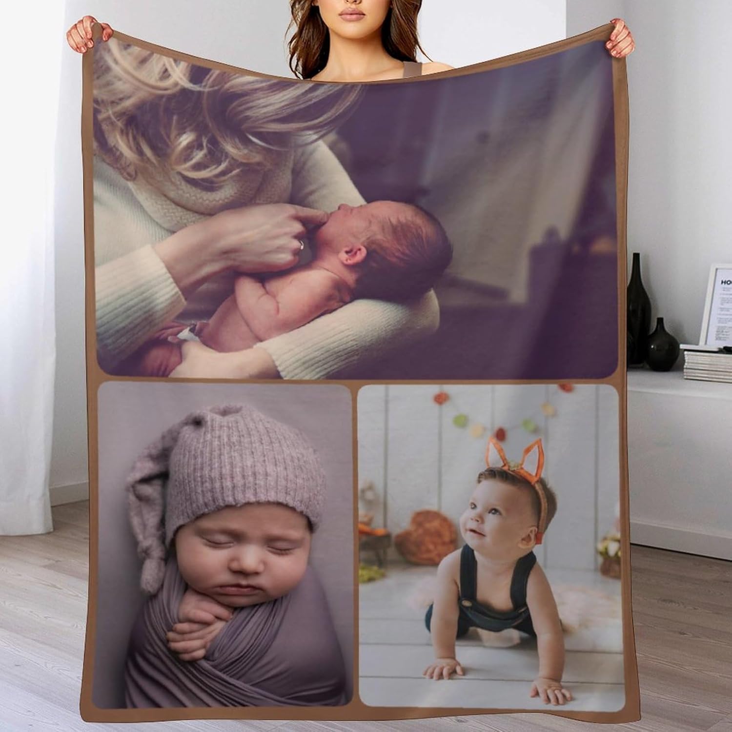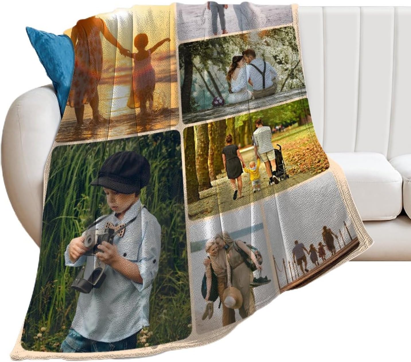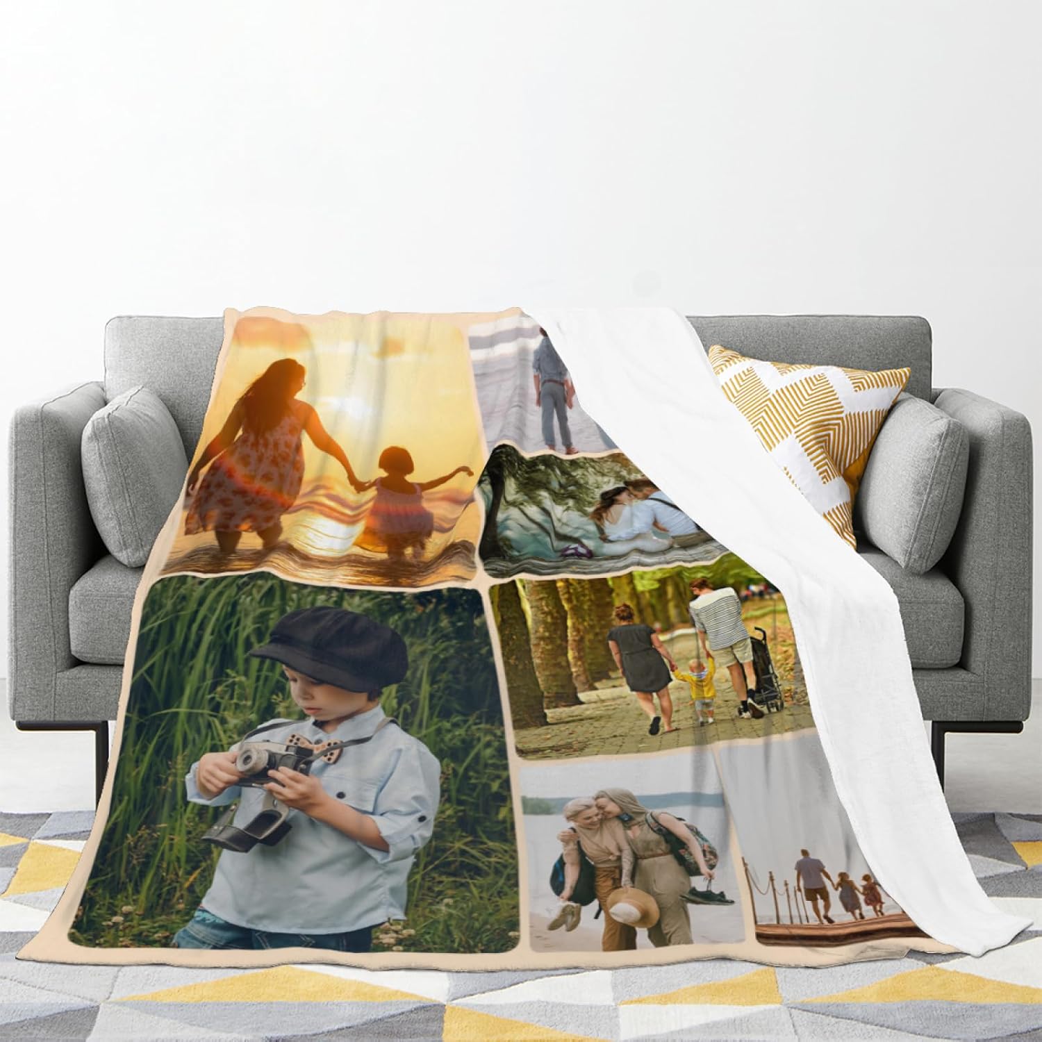 How to customize: 1. Click the customize now button. 2. Click the button to browse, then select add your favorite photo. 3. Drag the picture to your preferred location. 4. Add to shopping cart and check out. Versatility: It's a multipurpose accessory. Use it as a cozy throw blanket, a comfortable bed or sofa cushion, or even as a baby blanket for swaddling or nursing. Ideal for occasions like anniversaries, Father's Day, Mother's Day, baby shower, Christmas, Valentine's Day, weddings, and more.