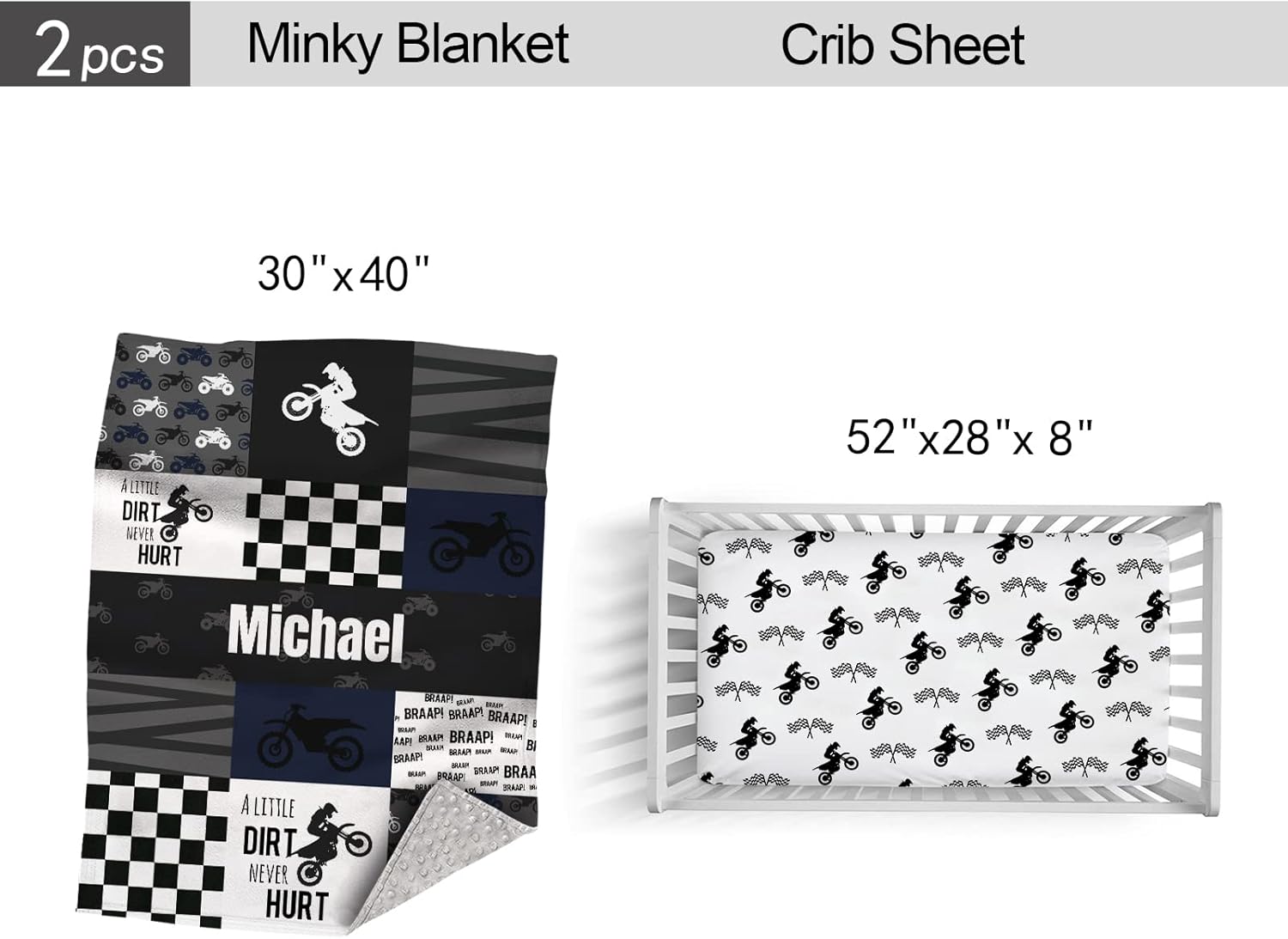 Our customized girl and boy crib bedding set includes cute and super soft baby comforter, generously sized 30" by 40", crib sheet designed for standard crib mattress, measuring 28" by 52" with 8", perfectly fitting over all standard cribs. The fabrics in our crib set have been carefully selected to provide maximum comfort for your baby during nap time and bed time.The woodland theme animal themed baby sheet features bear, moose, fox, deer, squirrel, rabbit, mountain and tree silhouettes throughout the soft fabric and includes all around elastic for a safe and snug fit.There is no doubt in our mind that you will love our product. If there are any issues, please contact us immediately and we will provide a solution. Our customer's satisfaction is utmost priority and we will personally respond to each message! Please Click the " Customized Now " to create your baby's unique toddler crib bedding sets.
