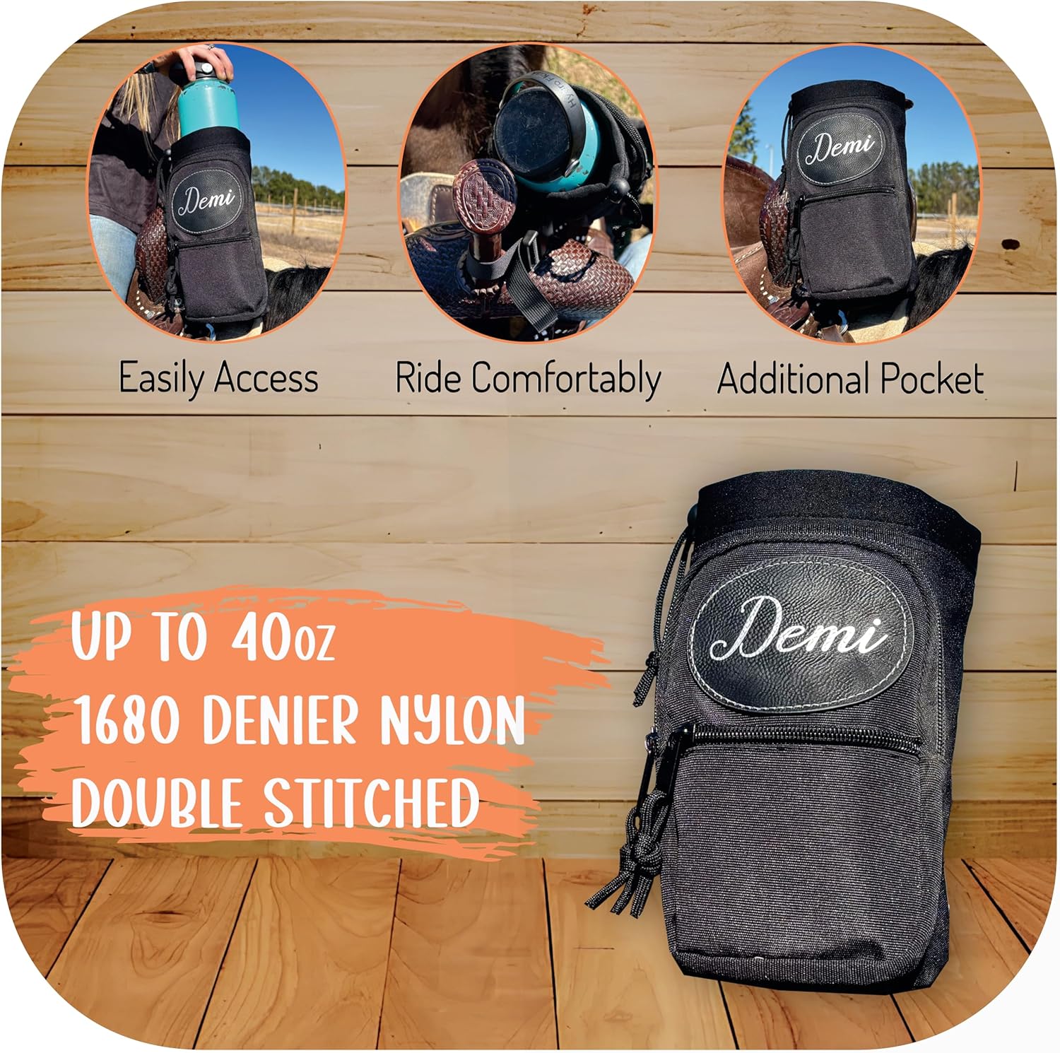 ✔️ Laser-engraved personalization ✔️ Perfect horse gift ✔️ Insulated for temperature control ✔️ Secure attachment to saddles ✔️ Holds up to 40oz bottle ✔️ Multi-pocket design ✔️ Doubles as phone holder ✔️ Easy access while riding ✔️ Durable 1680-denier nylon ✔️ Tested by equestrians