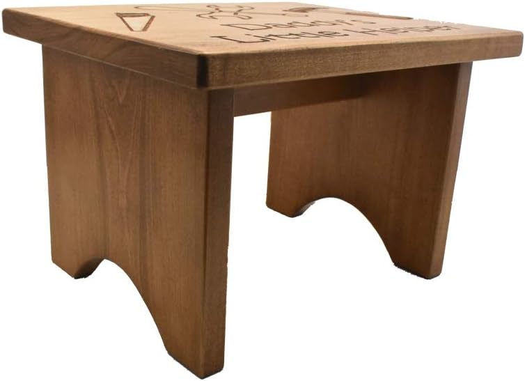 Create a unique toddler step stool for the children in your life at Whitetail Woodcrafters. Our children's step stools are handcrafted from solid maple wood for a high quality stool that will be around for generations. You can personalize this toddler stool however you wish with our free custom laser engraving. Use your imagination to create a unique little stool that your child will endure forever. It is easy to personalize this children's step stool. All you need to do is enter the text that you want engraved in a note along with your order. Also, let us know if you want us to use an image in your stool design. After we receive your order, we will create your design and send you a copy for your approval. Dimensions of the toddler step stool are 10" x 12" x 8".