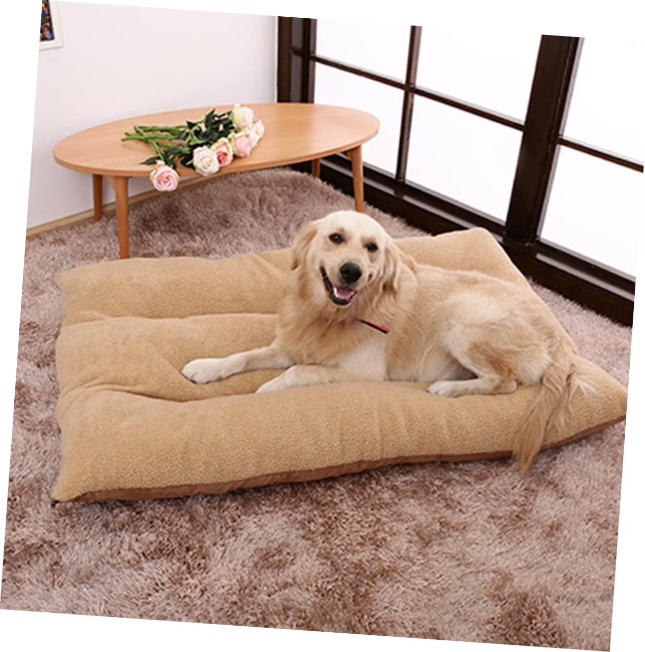 Package Include 1 x pet pad Characteristics - Size: About 70 x 55 x 12cm Dog Cushion. - Color: Light Coffee. - Material: Cashmere, suede, PP cotton. - and chic, suit your home decoration and decorate your living Cushion. - Made from material, strong and Cushion for Dogs. - place for pet to play and rest in autumn or winter Pet Bed. - Easy to disassemble for washing and cleaning Dog Sleeping Cushion. - play pad for your lovely pigs, dogs, and other pets. - Warm enough , your pet will not be worried about winter.Goods Informationdog rest nest The cushion is an place for the pet to play and rest.dog cot bed This adorable pet cushion can keep your pet warm and secure indoors, which is well made of for and use.stuffed dog cushion -slid bottom design can properly help keep the pad in place.dog mat Provide a for your pet
