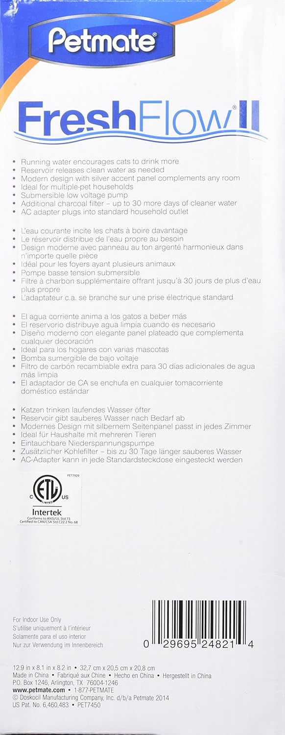 Provides stream of naturally cool and aerated water quiet pump with no splash updated design offers more drinking area two replaceable charcoal filters keep water cleaner.