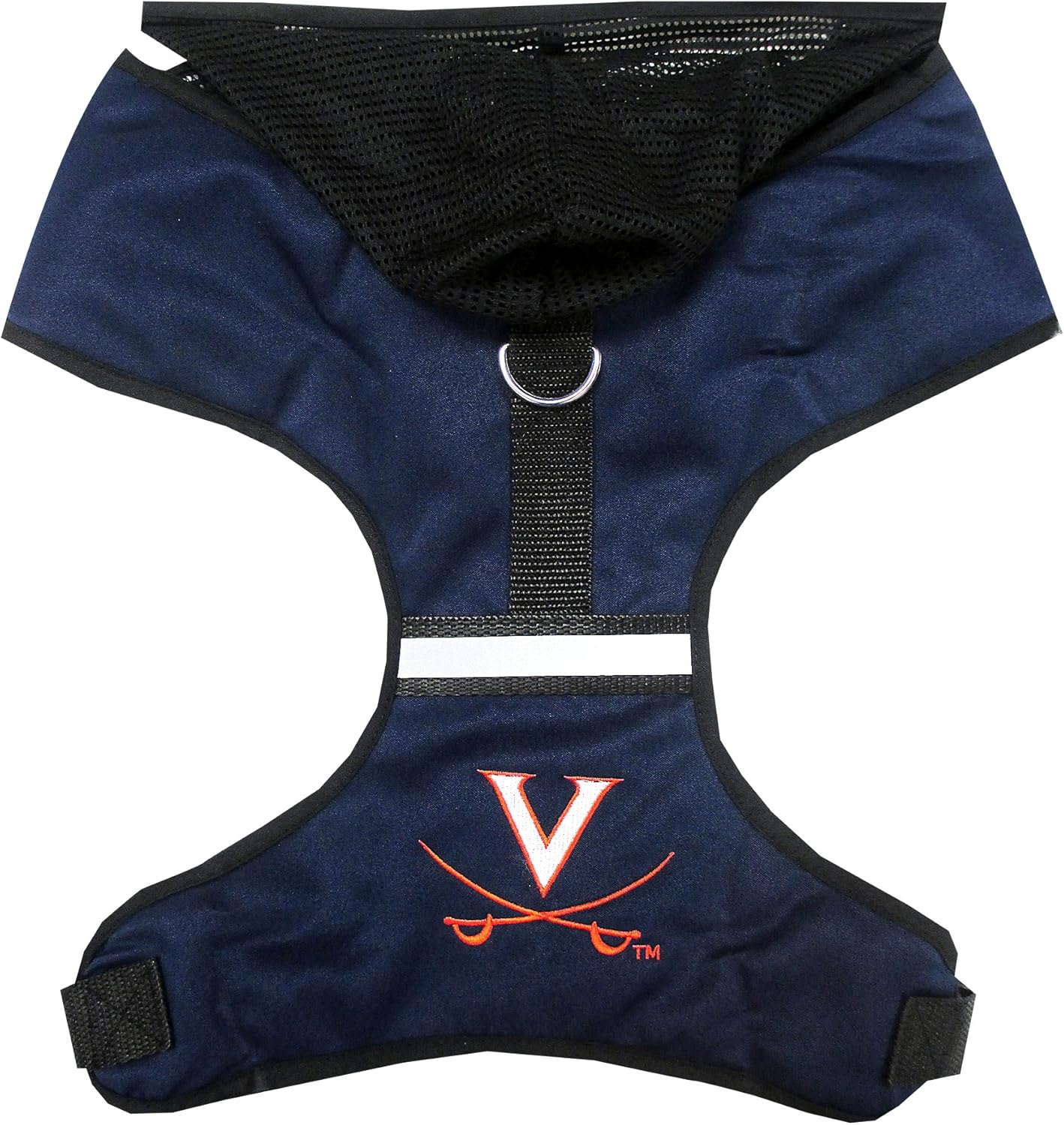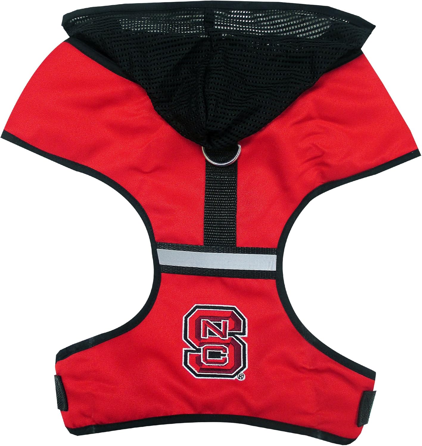 Show your passion for your favorite team as your pup sports this elegant NCAA hooded harness in vibrant team colors. This Pets First padded harness features an embroidered team logo on the back and a reflector stripe for safety. Walks will be a delight while you stay in control and your dog stays comfortable. This sport hooded harness is made out of lightweight, soft twill material and flexible padded air mesh to allow air to flow through so your dog stays cool. This durable and stylish harness has 2 adjustable nylon straps with quick-release, heavy-duty snap lock buckles for easy and secure fit. Includes a metal hook (D-ring) for attaching a leash that will reduce tugging and pulling on your doggie's neck. You are guaranteed style, comfort and safety with this unique Pets First harness. -- Pets First Company is an established well-known company in the sports-licensed pet product industry. Pets First's team of unique and creative designers choose the highest quality materials and the latest technology to provide you with a durable, fashionable, comfortable and outstanding item. We follow the highest standards of safety guidelines. Pets First has gained its reputation to provide every pet owner with magnificent licensed pet products; from unique and colorful apparel items to fun and playful toys and accessories.