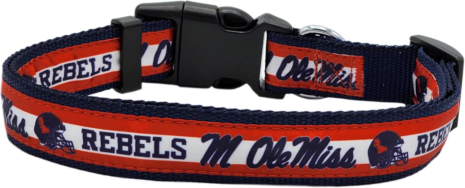 Your pet can now become a #1 fan with this officially licensed NCAA PET COLLAR.>>> Looking for a STRONG and DURABLE DOG COLLAR?? Oh, you also want it to be COOL and Fashionable?You can now buy your sporty pup the collar of your favorite NFL team!!!This NCAA DOG COLLAR will bring fun and excitement to you as well as to your four legged sports fan!!!Get ready for some SPORTS with a COOL COLLAR that includes your favorite TEAM NAME and LOGO so that you can stand out in the crowd!This NCAA COLLAR is made with Heavy-Duty nylon material to ensure durability!It features your favorite Football/Basketball Team NAME and LOGO in vibrant team color!It has a metal D ring to attach your leash!Designed with breakaway buckle for easy open/close!Great Collar for the Sporty Pup & looks even greater with our matching NCAA Leash, NCAA Jersey, NCAA Toys and the rest of our NCAA Pet Collection!Score a touchdown with this authentic PET COLLAR so your entire family is ready for game day!SIZES:This COLLEGE COLLAR is available in 3 SIZES. Choose from: Small, Medium and LargeThis NEW SPORTS COLLAR is adjustable for a perfect and comfortable fit!>> Please follow the illustrated Size Chart located in image #2 and match your pet's neck to the correct size!Our LICENSED PET COLLAR comes in all 50+ COLLEGIATE TEAMS:Cincinnati Bearcats, Connecticut Huskies, East Carolina Pirates, Houston Cougars, Memphis Tigers, Navy Midshipmen, Smu Mustangs, South Florida Bulls, Temple Owls, Tulane Green Wave, Tulsa Golden Hurricane, Boston College Eagles, Clemson Tigers, Duke Blue Devils, Florida State Seminoles, Georgia Tech Yellow Jackets, Louisville Cardinals, Miami (Fl) Hurricanes, North Carolina Tar Heels, North Carolina State Wolfpack, Pittsburgh Panthers, Syracuse Orange, Virginia Cavaliers, Virginia Tech Hokies, Wake Forest Demon Deacons, Baylor Bears, Iowa State Cyclones, Kansas Jayhawks, Kansas State Wildcats, Oklahoma Sooners, Oklahoma State Cowboys, Tcu Horned Frogs, Texas Longhorns, Texas Tech Red Raiders, West Virginia Mountaineers, Illinois Fighting Illini, Indiana Hoosiers, Iowa Hawkeyes, Maryland Terrapins, Michigan Wolverines, Michigan State Spartans, Minnesota Golden Gophers, Nebraska Cornhuskers, Northwestern Wildcats, Ohio State Buckeyes, Penn State Nittany Lions, Purdue Boilermakers, Rutgers Scarlet Knights, Wisconsin Badgers, Charlotte 49ers, Fiu Golden Panthers, Florida Atlantic Owls, Louisiana Tech Bulldogs, Marshall Thundering Herd, Middle Tennessee Blue Raiders, North Texas Mean Green, Old Dominion Monarchs, Rice Owls, Southern Miss Golden Eagles, Uab Blazers, Utep Miners, Utsa Roadrunners, Western Kentucky Hilltoppers, Army West Point Black Knights, Byu Cougars, Liberty Flames, Massachusetts Minutemen, New Mexico State Aggies, Notre Dame Fighting Irish, Akron Zips, Ball State Cardinals, Bowling Green Falcons, Buffalo Bulls, Central Michigan Chippewas, Eastern Michigan Eagles, Kent State Golden Flashes, Miami (Oh) Redhawks, Northern Illinois Huskies, Ohio Bobcats, Toledo Rockets, Western Michigan Broncos, Air Force Falcons, Boise State Broncos, Colorado State Rams, Fresno State Bulldogs, Hawaii Rainbow Warriors, Nevada Wolf Pack, New Mexico Lobos, San Diego State Aztecs, San Jose States Partans, Unlv Rebels, Utah State Aggies, Wyoming Cowboys, Arizona Wildcats, Arizona State Sun Devils, California Golden Bears, Colorado Buffaloes, Oregon Ducks, Oregon State Beavers, Stanford Cardinal, Ucla Bruins, Usc Trojans, Utah Utes, Washington Huskies, Washington State Cougars, Alabama Crimson Tide, Arkansas Razorbacks, Auburn Tigers, Florida Gators, Georgia Bulldogs, Kentucky Wildcats, Lsu Tigers, Mississippi State Bulldogs, Missouri Tigers, Ole Miss Rebels, South Carolina Gamecocks, Tennessee Volunteers, Texas A&m Aggies, Vanderbilt Commodores, Appalachian State Mountaineers, Arkansas State Red Wolves, Coastal Carolina Chanticleers, Georgia Southern Eagles, Georgia State Panthers, Louisiana Ragin' Cajuns, Louisiana-monroe Warhawks, South Alabama Jaguars, Texas State Bobcats, Troy Trojans, Ucf Knights, Wichita State Shockers, Albany Great Danes, Binghamton Bearcats, Hartford Hawks, Maine Black Bears, Massachusetts-lowell River Hawks, New Hampshire Wildcats, Stony Brook Seawolves, Umbc Retrievers, Vermont Catamounts, Davidson Wildcats, Dayton Flyers, Duquesne Dukes, Ford Hamrams, George Mason Patriots, George Washington Colonials, La Salle Explorers, Rhode Island Rams, Richmond Spiders, Saint Joseph's (Pa) Hawks, Saint Louis Billikens, St. Bonaventure Bonnies, Virginia Commonwealth Rams, Florida Gulf Coast Eagles, Jacksonville Dolphins, Kennesaw State Owls, Lipscomb Bisons, N.j.i.t. Highlanders, North Alabama Lions, North Florida Ospreys, Stetson Hatters, Butler Bulldogs, Creighton Bluejays, Depaul Blue Demons, Georgetown Hoyas, Marquette Golden Eagles, Providence Friars, Seton Hall Pirates, St. John's Red Storm, Villanova Wildcats, Xavier Musketeers, Eastern Washington Eagles, Idaho Vandals, Idaho State Bengals, Montana Grizzlies, Montana State Bobcats, Northern Arizona Lumberjacks, Northern Colorado Bears, Portland State Vikings, Sacramento State Hornets, Southern Utah Thunderbirds, Weber State Wildcats, Campbell Fighting Camels, Charleston Southern Buccaneers, Gardner-webb Runnin' Bulldogs, Hampton Pirates, High Point Panthers, Longwood Lancers, Presbyterian Blue Hose, Radford Highlanders, Unc Asheville Bulldogs, Usc Upstate Spartans, Winthrop Eagles, Cal Poly Mustangs, Cal State Fullerton Titans, Cal State Northridge Matadors, Hawaii Warriors, Long Beach State 49ers, Uc Davis Aggies, Uc Irvine Anteaters, Uc Riverside Highlanders, Uc Santa Barbara Gauchos, Charleston Cougars, Delaware Fightin Blue Hens, Drexel Dragons, Elon Phoenix, Hofstra Pride, James Madison Dukes, North Carolina-wilmington Seahawks, Northeastern Huskies, Towson Tigers,william & Mary Tribe, Florida International Golden Panthers, Cleveland State Vikings, Detroit Mercy Titans, Green Bay Phoenix, Illinois-chicago Flames, Iupui Jaguars, Milwaukee Panth