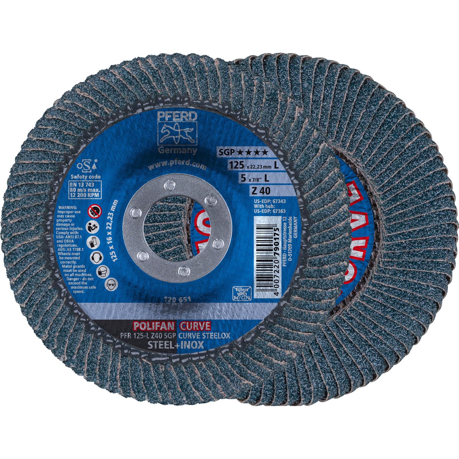 PFERD 67343 5" x 7/8" POLIFAN CURVE Flap Disc SGP Zirconia 40G Large Radius