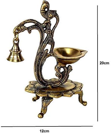 💎 Aport Home 💎 Lotus Shaped Round Brass Diya Oil Lamp Home Decor Brass Diya Brass Deepam Brass Lamps Kuthu Vilakku Oil Lamp, Lamps For Home And Office. (Peacock Diya With Bell)
