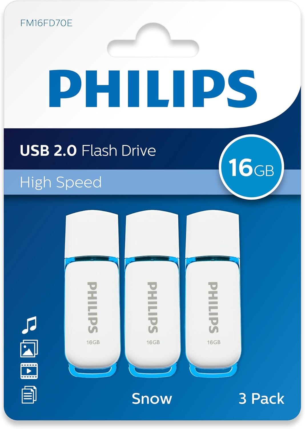 PHILIPS 16GB Flash Drive, Snow Edition USB 2.0 - White/Blue - 3-Pack