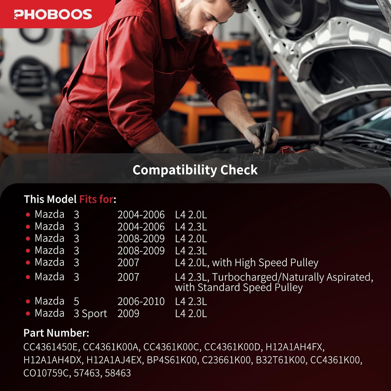 | Model | Compatible with Mazda 3 2004-2009, 3 Sport 2009, 5 2006-2010, L4 2.0L/2.3L |