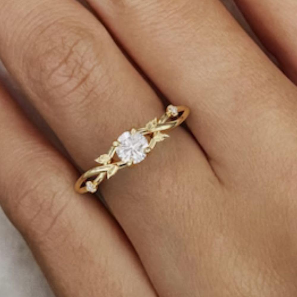 1 Ct Round Diamond Delicate Infinity Shank Nature Inspire Solitaire Engagement Ring For Women 14K Yellow Gold Finish Vine Leaf Design Ring 925 Sterling Silver Handmade Promise Ring. Material: Sterling Silver, which keeps glossy for a lifetime and is not harmful to people. Sterling Silver's strength makes it an excellent choice of material for jewelry. It is resistant to scratching and it will retain its beauty for years. Excellent Quality, Good Price, Comfort Fit Safe, and Comfortable to Wear in Daily Life. Gift idea: A wonderful gift for yourself, your lovers, your friends, your family, or other people dear to you on many occasions: birthdays, Christmas, dating, graduation, wedding, Mother's Day, engagement, Valentine's Day, and any special dates to you. Please carefully check the ring size you need before purchasing. We strive our best for your satisfaction. All your responses are valued highly and will be used to further improve the quality of our service and products. Please feel free to contact us if you have any questions!