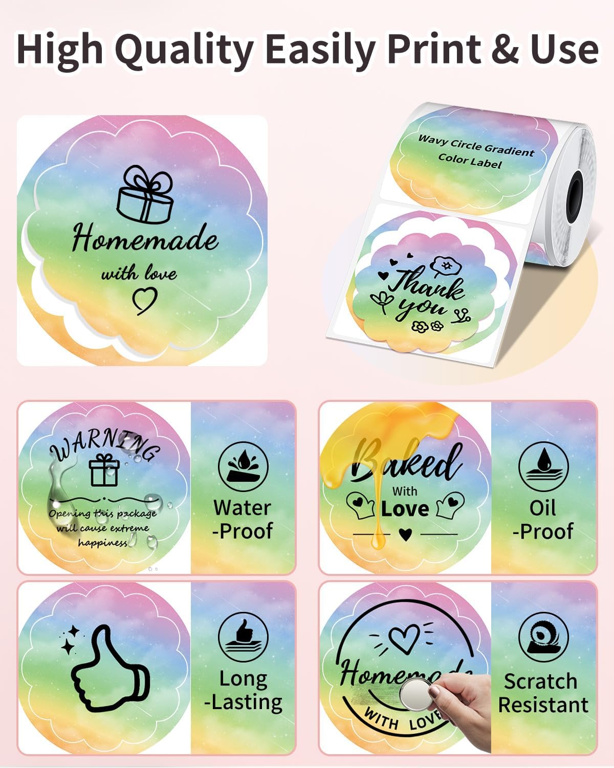 M220 Label Maker & 1 Roll Wavy Thermal Round Gradient Rainbow Label, Phomemo New Flagship 3.14 Inch Bluetooth Portable Thermal Label Printer, With 3 Coiled Label