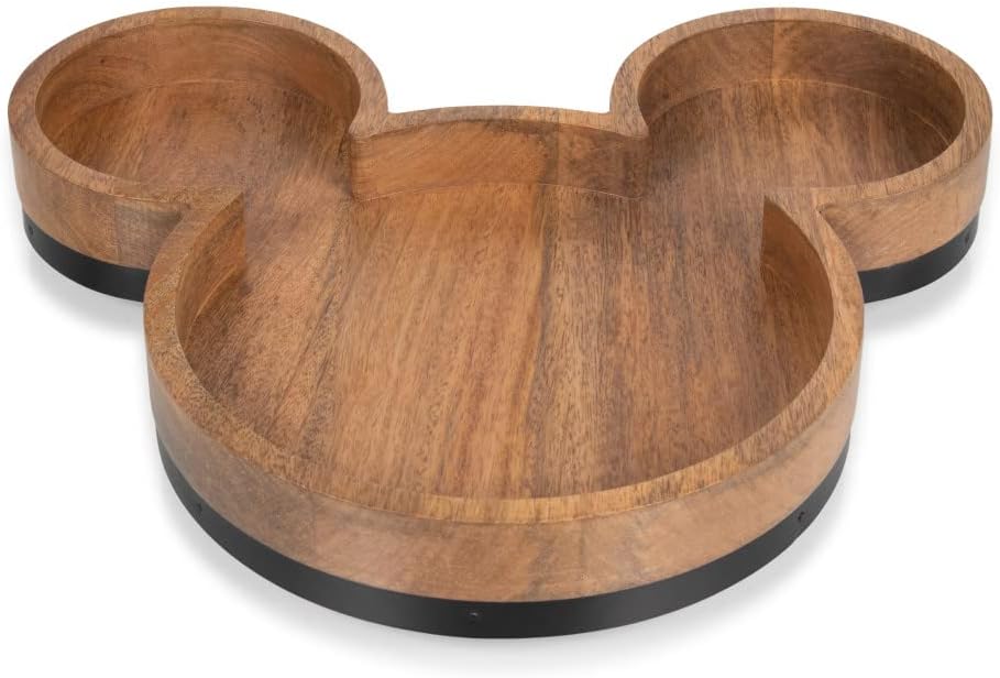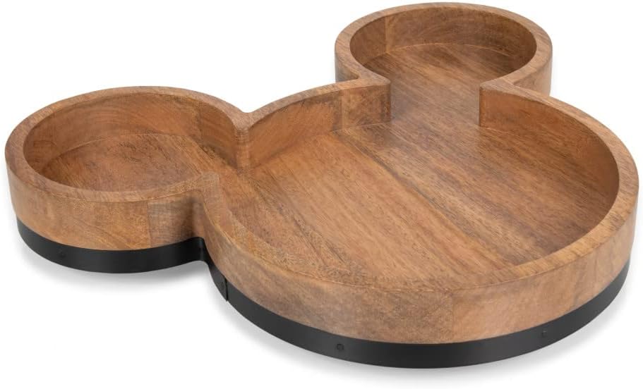 Add a touch of Disney charm to your spread with the Disney Mickey Mouse Shaped Serving Tray. Crafted from solid mango wood, this uniquely shaped serving board is designed to showcase charcuterie appetizers desserts and finger foods in a fun and eye catching way. Measuring 13.78 by 12 by 1.77 inches, the tray offers generous surface area while maintaining a comfortable tabletop footprint. A sleek steel accent band enhances the design, adding a polished finish that complements the warm natural wood grain. Perfect for entertaining or everyday display, this serving tray helps elevate your table setting while remaining practical and easy to use. The smooth mango wood surface wipes clean after use and is built to handle repeated serving occasions. Backed by the Picnic Time Family of Brands Lifetime Guarantee, this Disney Mickey Mouse Serving Tray blends dependable quality with iconic style, making it a standout addition to any serveware collection.
