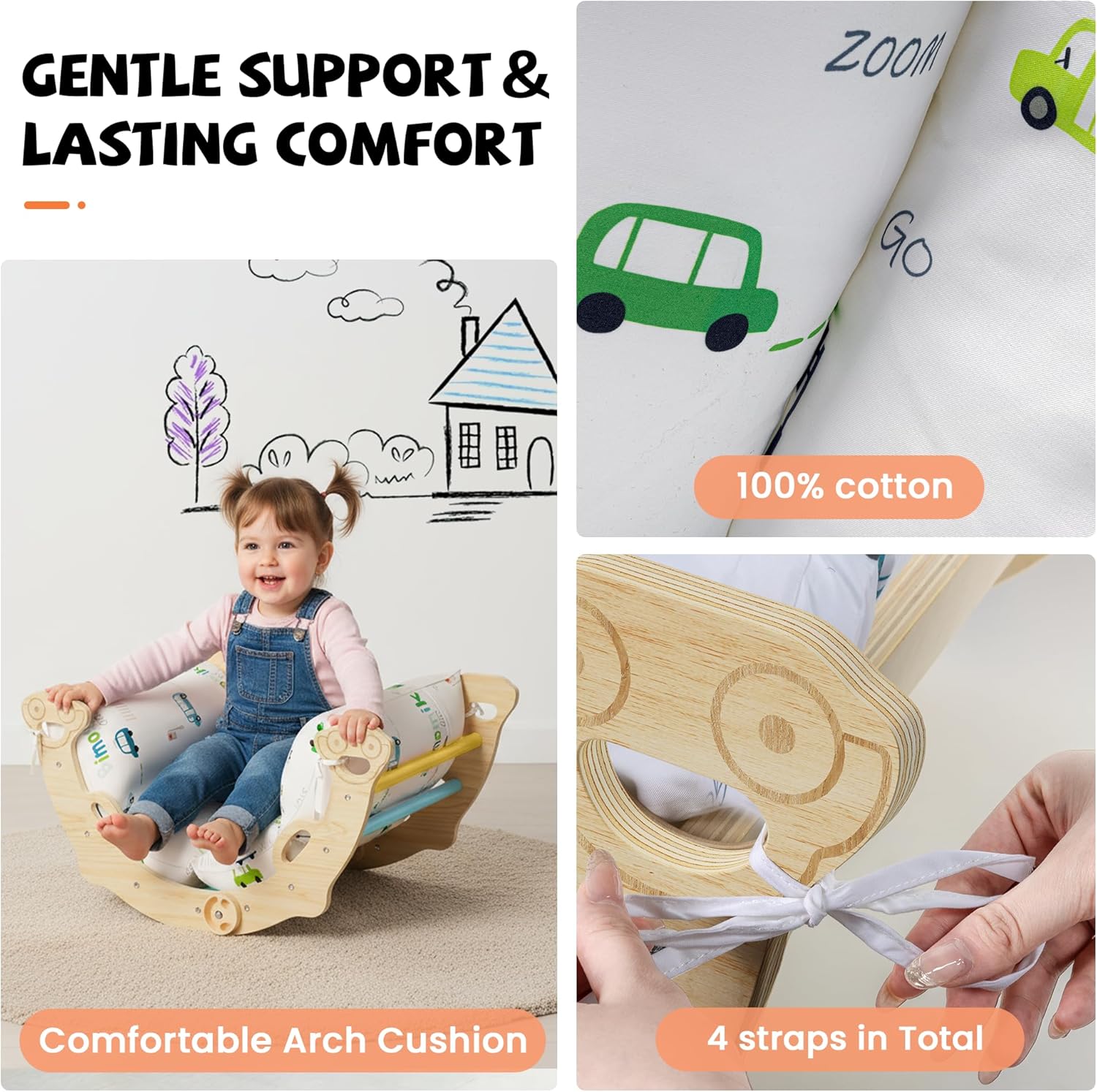 | Included Components | Arch cushion, Climbing Triangle, Rocking Arch, Slide, Wooden car |