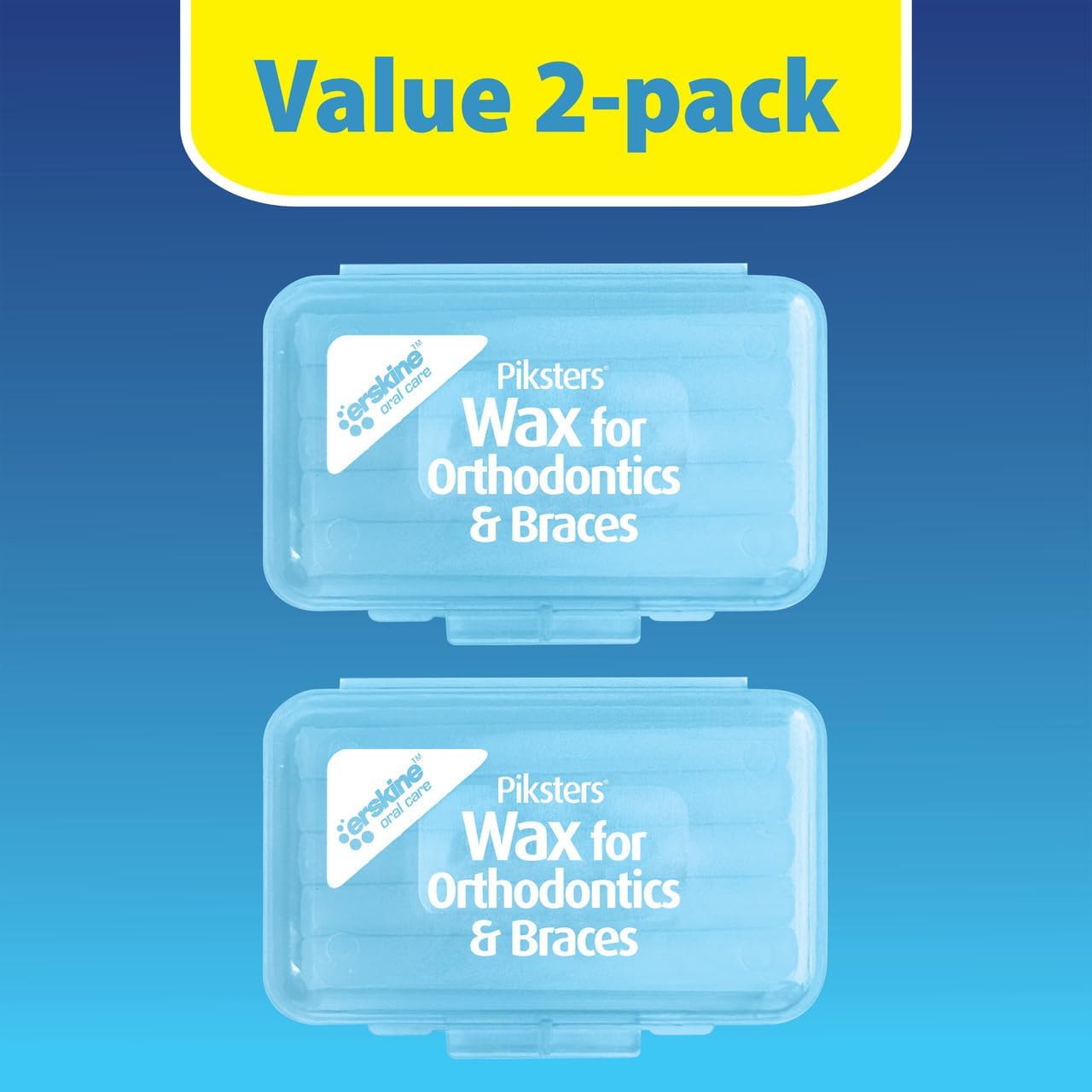 A twin pack of orthodontic wax. Designed to reduce the irritation, pain and ulceration caused by brackets and wires.