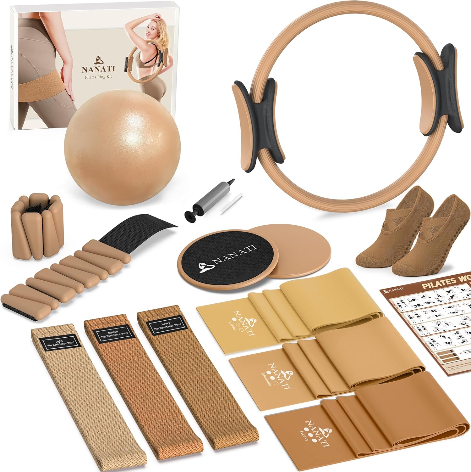 | Included Components | 14.5" Pilates Ring & 9.8" Pilates Ball, 2 Ankle Wrist Weights (1 lb each) & 2 Core Sliders, 4 Silicone Resistance Bands & 1 Fabric Resistance Band & 3 Elastic Stretch Bands, A Pair of Pilates Socks & A Storage Bag, Air Pump & Inflatable Tube & Pilates Workout Guide |