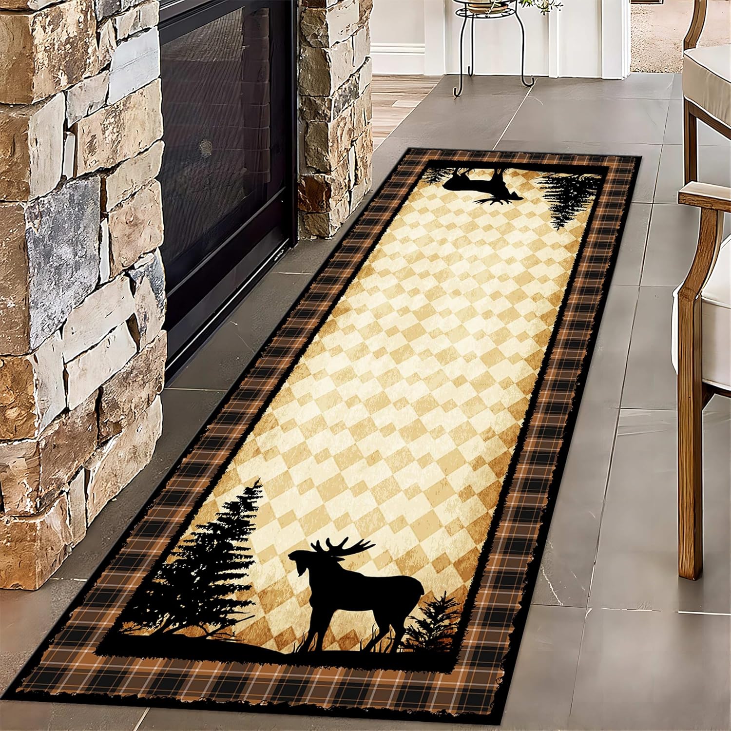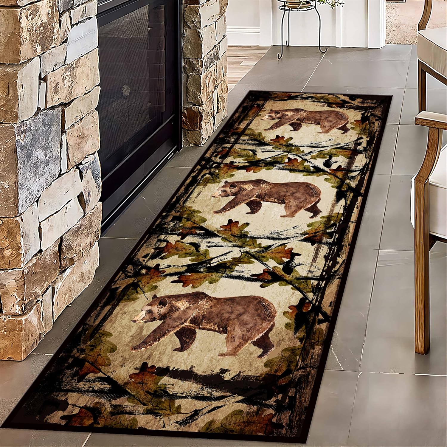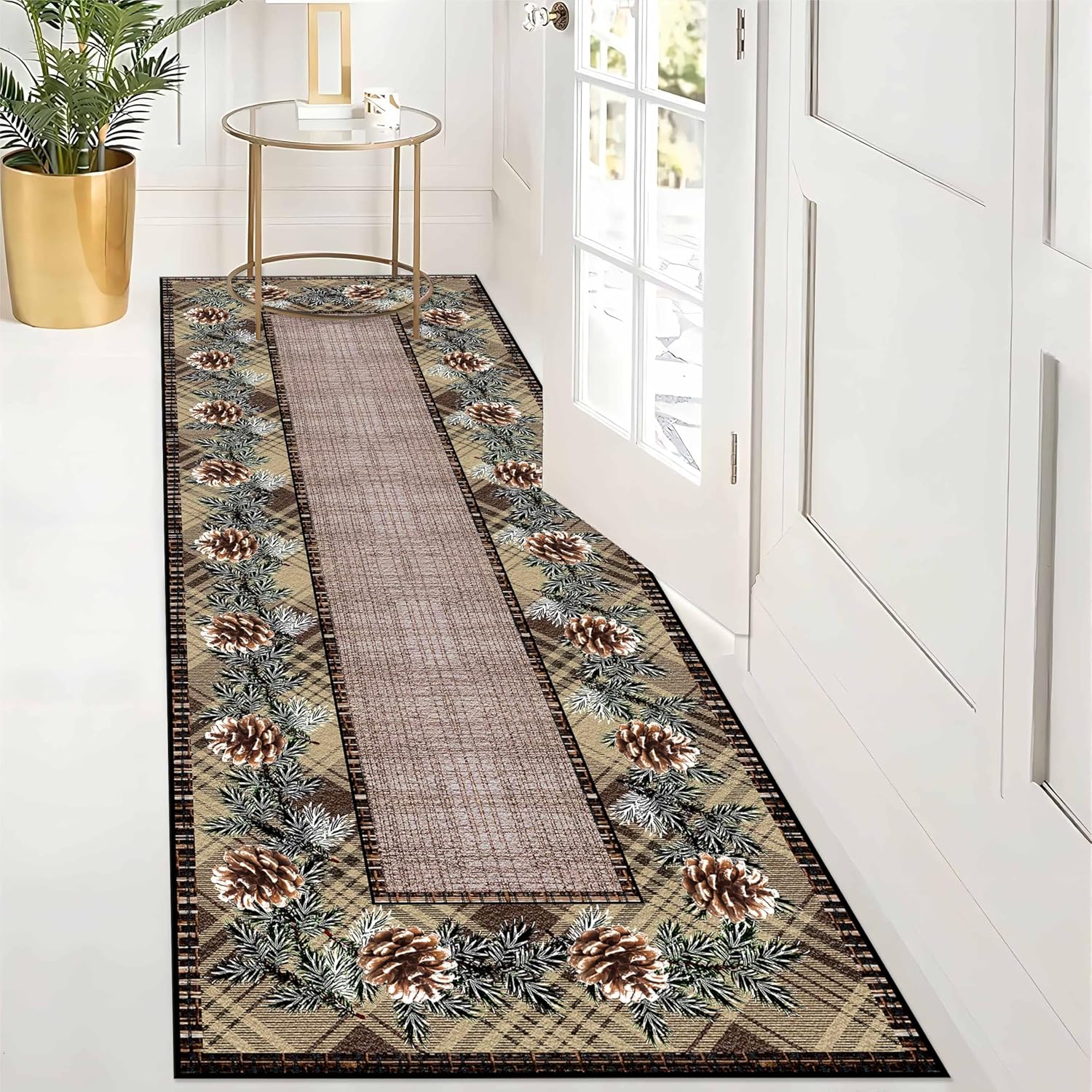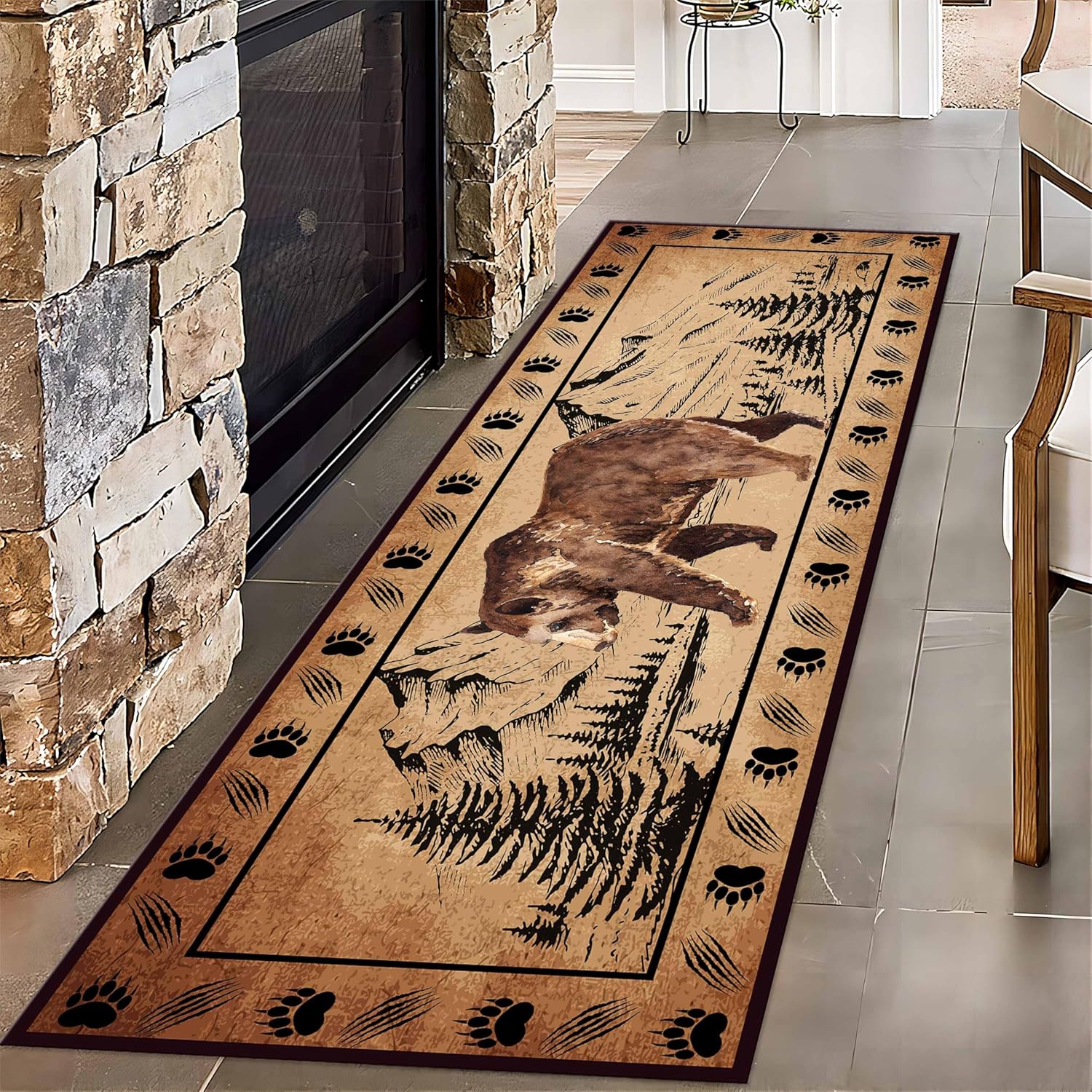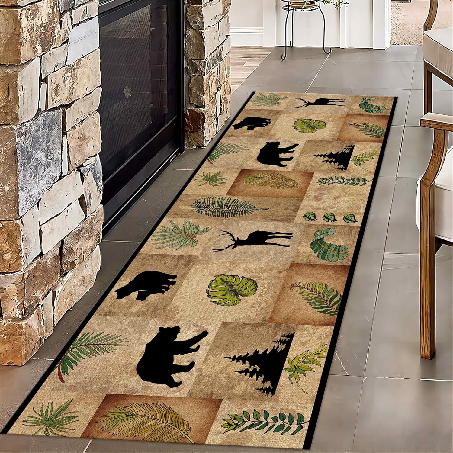 Woodland rugs are the perfect addition to any rustic lodge or woodland-themed spaceFeatures:①Vintage brown carpets depict charming woodland scenes, featuring pine cone patterns, bears, and deer, creating an authentic outdoor ambiance②Pine cone runner rugs are ideal for cabin lovers, bringing the tranquil beauty of a wild forest into your home③Lodge decor mats are washable, easy-to-clean, and feature a low-pile fabric that combines comfort and practicality with a soft, breathable, and highly absorbent surface④Whether you're decorating an entryway, a hallway, or any living space, our bear moose entry rug complements any interior space perfectly⑤Rustic lodge carpets add character to any space. This long hallway rug is both a practical floor covering and a finishing touch that captures the charm of the forestSize:1.3' x 7' /15.6" x 84"2' x 6' /24" x 72"2' x 7' /24" x 84"2' x 8' /24" x 96"2' x 10' /24" x 120"2.6' x 7' /31" x 84"2.6' x 10' /31" x 120"3.3' x 7' /43" x 84"3.3' x 10'/43" x 120"4' x 10'/48" x 120"4' x 12' /48" x 144"Warm Tips:①The carpet for living room may have creases when you receive it, but don't worry, you can restore our rug to its original state by folding it in the opposite direction or pressing it with heavy objects for a few days②Due to the different angles of natural light and electronic displays, the color of the floor rug may vary slightly, but within an acceptable range