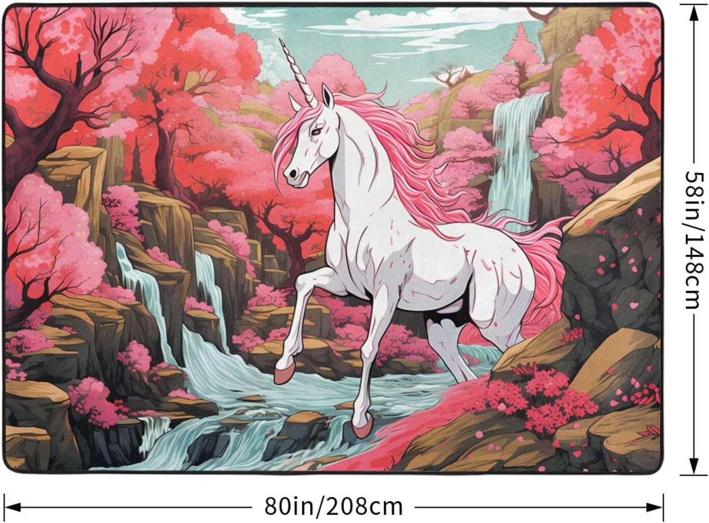 Choose our Pink Unicorn printed decorative carpet to bring meticulous care to your family. Made of high-specification polyester flannel, the pile is fine and dense, not easy to pilling and fading, and it will accompany you longer. The memory foam middle layer is like a caring friend, dynamically adjusting the foot pressure, relieving fatigue, and making your every step full of comfort. The non-slip bottom design is like a loyal guardian, silently protecting the safety of you and your family, especially suitable for families with elderly and children. Easy to clean, can be washed by water or machine, saving time and effort. Exquisite cutting and sewing technology ensures that the edge of the carpet is flat and burr-free, and the truth is in the details. Whether it is a bathroom, bedroom or office, it can add a touch of warmth and peace of mind to your life.