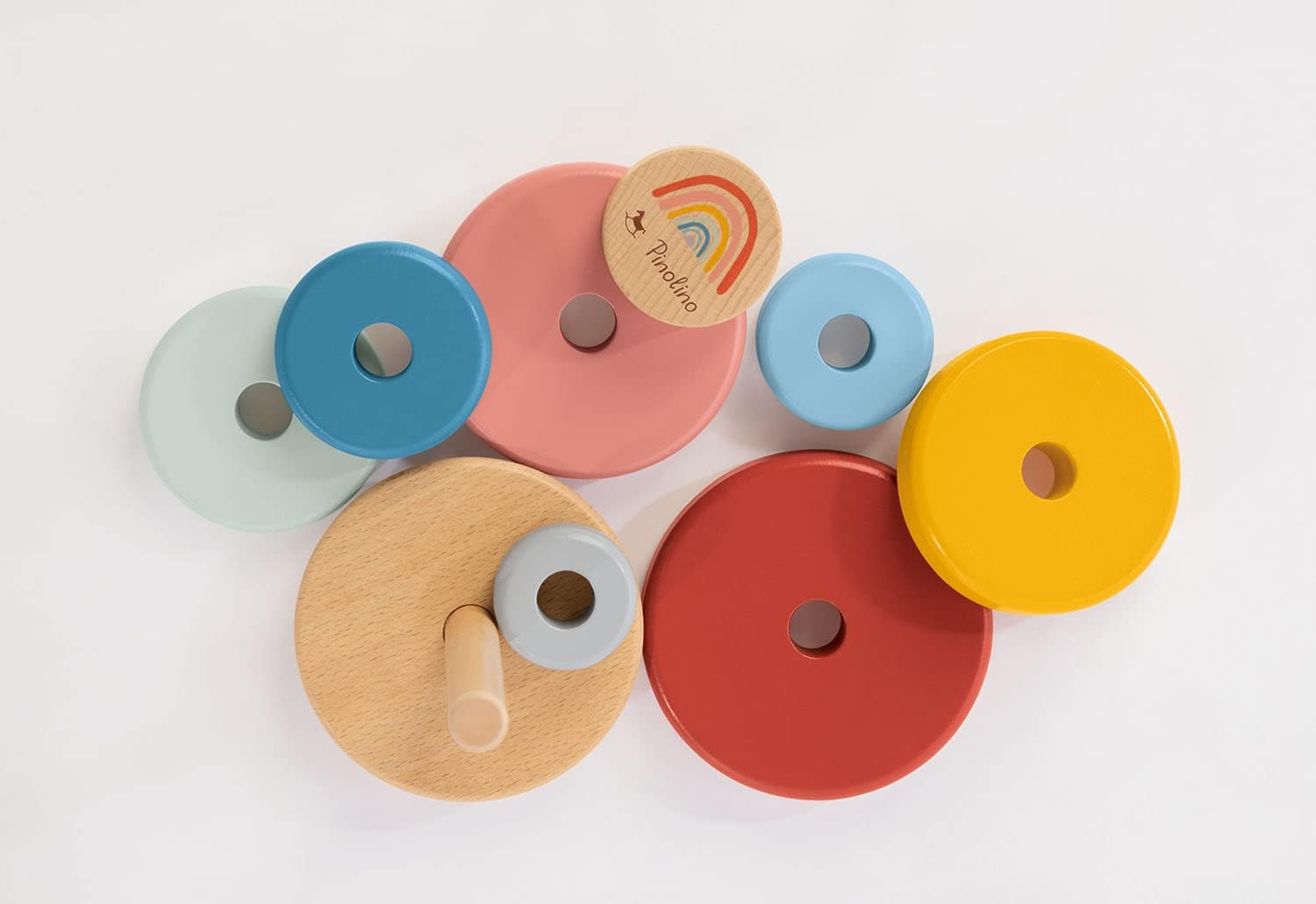 The rainbow colour stacking game has a bar attached to a band, giving it flexibility but stability is maintained. FSC certified toy (FSC-C120795) has a rounded bottom plate, which allows the tower to swing back and forth, providing extra fun and also promoting motor skills. The wooden toy is recommended for children from 1 year and not only promotes hand-eye coordination, but also a good gift for Christmas or birthday. Pinolino has fulfilled children's dreams since 1997, distributing children's furniture, accessories and toys. The German company uses only varnishes, glazes and oils that are suitable for children and offers many FSC® certified products