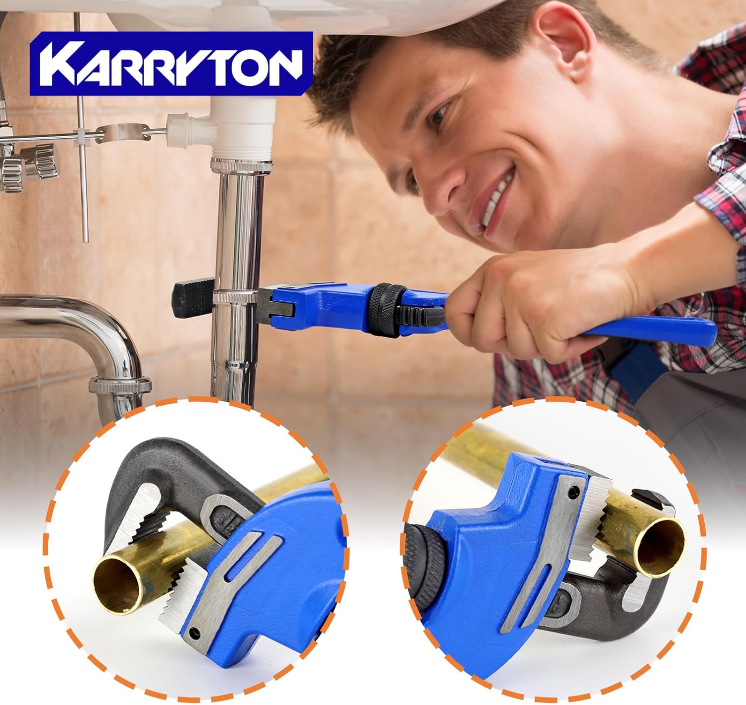 KARRYTON Pipe Wrench Set(8" 10" 14" 18")+End Pipe Wrench 8"