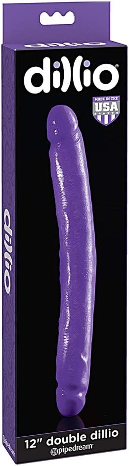Dillio 12 inches Double Dong Purple. Pipedream's boutique friendly Dillio line is designed to hit just the right spots every time. With a wide variety of lengths, girths and shapes, the possibilities are endless! Feeling adventurous? Try the Double Dillios with your favorite partner! Crafted from the highest quality, American made rubber, each Dillio is 100% phthalate and latex free PVC and hypoallergenic. Made in the USA.