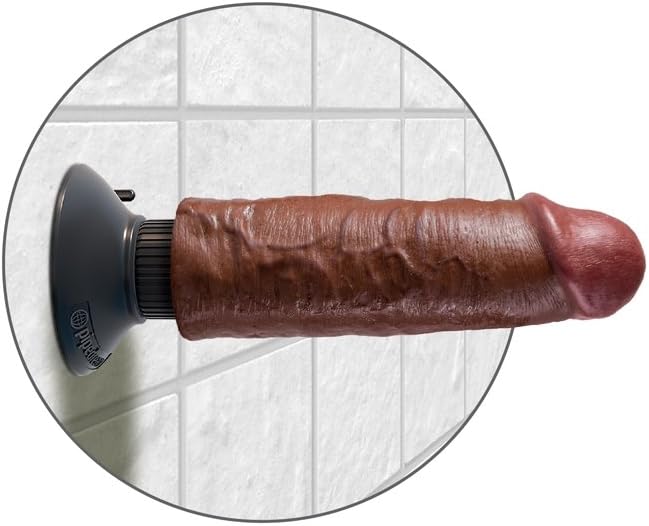 King Cock 6 inches Dildo Brown Vibrating. Soon after the brand's initial release in January 2015, King Cock became the go to name for high quality, super realistic, American made rubber. To get to the top, our approach has been simple: we have created a better American made product at a more affordable price, and we have been able to fill the orders consistently by ensuring that King Cock is always in stock. With our brand new state of the art manufacturing facilities producing the highest fill rates in the industry, it is no wonder why Pipedream has quickly become the King of American made rubber! We have the capacity and infrastructure to produce over 10,000 units a day, and with distribution partners spread all across the globe, it is easy to see why King Cock wears the crown. But we are not stopping with American made rubber, we are going to show the whole world why it is good to be the King! Our new King Cock vibrating dildos are the most realistic American made vibrating cocks in the world! Every vein, every shaft and every head is handcrafted with exquisite attention to detail to give you the most lifelike experience imagined. The pose able shafts allow you to bend the vibe to conform to your body's contours, while the powerful motor whisks you away. The super strong removable suction cup bases stick to nearly any flat surface and make all King Cock Vibes harness compatible. You can even take these waterproof vibes into the shower, hot tub or spa and turn bath time into playtime! Features: Realistic (Fanta Flesh), Phthalates Free, Suction Cup, Waterproof, Harness Compatible, Multispeed, Vibrates. Vibrating dildo requires 3 AAA batteries, not included. Phthalate free PVC. Color Brown. Made in the USA. Videos added.