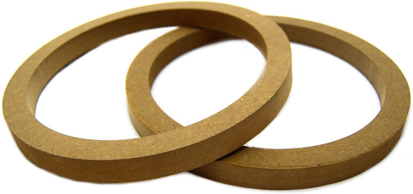 2 pairs of MDF 12’’ Speaker Rings No more spending time making your own speaker rings and cutting yourself! This product will save you time and is risk-free. This product will fit in most speakers on the market. Great for fiberglass, kick pods, and baffles. Thickness: 3/4" Width: 1" Inner Diameter: 11" Outer Diameter: 13" PLEASE NOTE THAT DUE TO THE PRESSED WOOD MATERIAL USED FOR THESE RINGS, THEY ARE VERY EASILY CUSTOMIZABLE FOR SPECIFIC SIZES. THESE RINGS CAN BE SHAVED OR FILED FOR AN IN-BETWEEN SIZE OR FOR A MORE CUSTOM FIT.