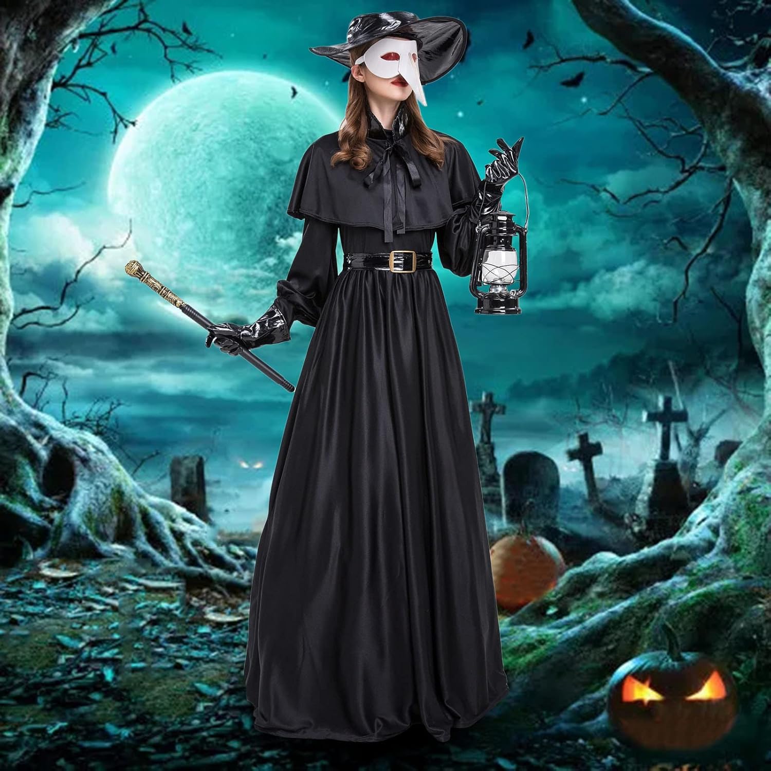 Plague Doctor Costume Beak Crow Long Beak Mask Costume Medieval Steampunk Style Halloween Cosplay Set๐ Product information ๐ โ๏ธ Season: ALL โ๏ธ Gender: Womens โ๏ธ Material: Polyester/cotton โ๏ธ Length: regular โ๏ธ Style: Halloween, Christmas, Daily, Casual โ๏ธ Occasion: Stage show,Drama show,Prom party,Home, Indoor โ๏ธ Both hand wash and machine wash is OK โ๏ธ Package include: 1 PC Women Dress โ๏ธ Please note that slight color difference should be acceptable due to the light and screen. โ๏ธ The size is not US standard size, please choose the size you need according to the measurement โ๏ธ If you have any questions, please Contact Us. Due to the time difference, we will give you a satisfactory answer within 24 hours. Thank you for your understanding and support.Plus size corset dress corset dress plus size renaissance dress renaissance corsets for women renaissance dress women victorian dress victorian dress for women victorian dresses for women princess dress for women princess dresses for women halloween dress halloween clothes prom dresses for women black prom dress black mini dress long sleeve mini dress for women medieval dress for women medieval times clothing witch dress for women witch dress vampire dress 1800s dress for women regency dress ball dresses for women edwardian dress y2k dress steampunk dress