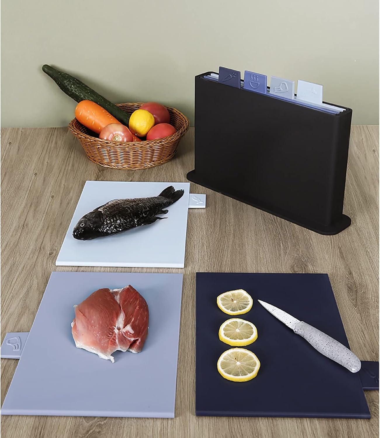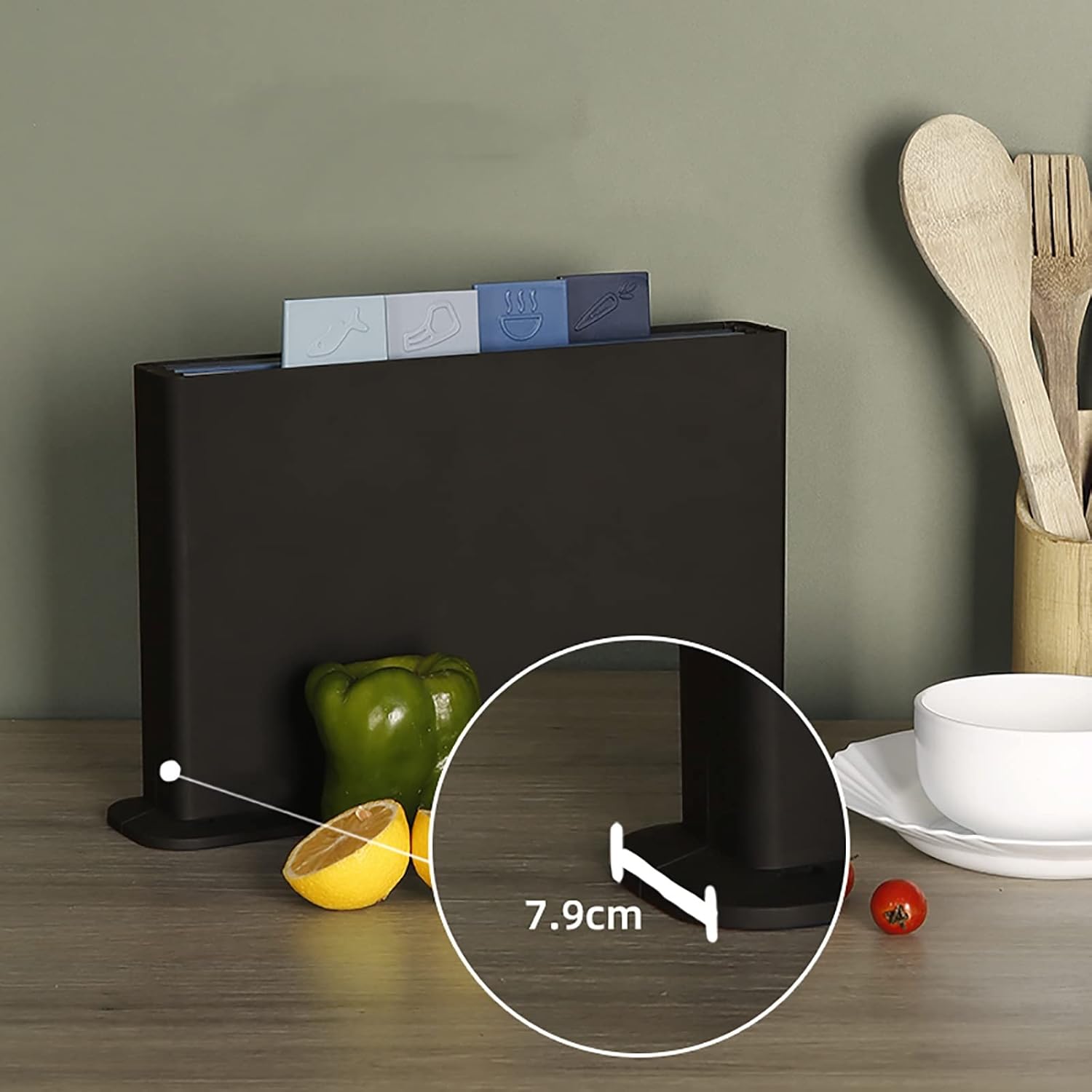 【Premium Cutting Board Rack】: The space-saving cutting board rack makes it more convenient for you to store cutting boards, and makes your kitchen countertop look tidier. After cleaning, use the cutting board rack to drain. The rack separates cutting boards from each other, which allows air to circulate naturally and discharge moisture, and prevents the growth of harmful substances due to close contact and excessive humidity. This provides a more convenient and safe storage method.