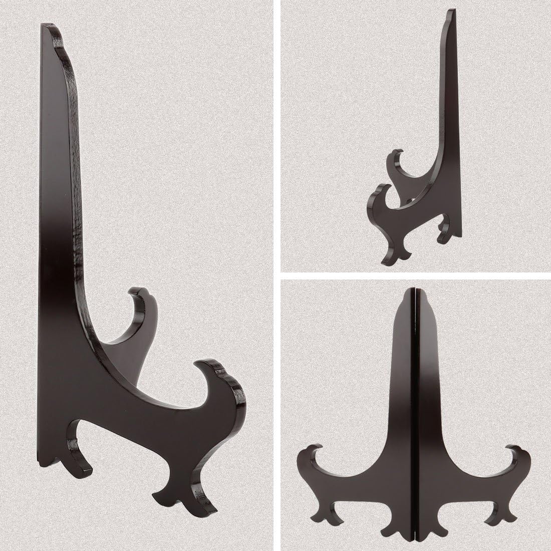 Plate Display Stands 13.4 to 15 Inch Photo Frame Picture Books Bowls Place Card Art Exhibition Holder Rack 4pcsFoldable design, space saving when you do not use it, you can put it in the drawer.They are easy to use. Opened wide enough to hold dish photo plate platter picture place card tile books cookbooks bowls.They are really sturdy and can be used to put lots of different things on display. We use them for small pieces of artwork and books.These are a great alternative to those cheap cardboard cutouts that is easy to wear out andrough.We suggest that the stands range from 5 Inch to 7 Inch, the placement product thickness should be less than 3cm/1.2 Inch.We suggest that the stands range from 8 Inch to 10 Inch, the placement product thickness should be less than 5cm/2 Inch.Available Quantity: 1pcs, 4pcs.Available Dia Fit for Products Placement:11-15cm/4.3 Inch-6 Inch16-21cm/6.3 Inch-8.3 Inch22-25cm/8.7 Inch-10 Inch26-29cm/10.2 Inch-11.4 Inch30-33cm/12 Inch-13 Inch34-38cm/13.4 Inch-15 InchProduct Features:100% Brand New and High QualityProduct Name:Plate Display StandsMaterial: WoodenApplicable Products:Tea Cake, Porcelain, Display Plates, Photo Frames,Carving,ClocksSuitable for Style:Chinese Style,ClassicalStyle,European StyleSuitable for placementposition: Office, Living Room, Bedroom, StudyUsing Skills:If you do not notice the size, buy display stand of the wrong model.There is an emergency skill: You can add some heavy tape on the back so it will not fall. Notes:1.Note that the of the product does not represent the applicable size.2.Please allow slight deviation of the measurement data.