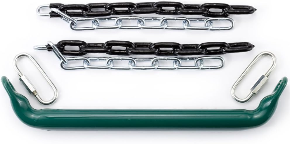 Product Description Heavy Duty bar with soft pliable rubber coating, Heavy-Duty superior strength welded-link chain with soft rubber coating, Attach to gym rings to create a unique Gym Ring Trapeze combination (Gym Rings Sold Separately ), Includes trap bar with heavy-duty chain , 350 lbs rating, Swing hangers sold separately From the Manufacturer KT 75381 Commercial Grade Trapeze Bar let's your child soar with ease way above the crowd. Features a Lifetime Warranty.