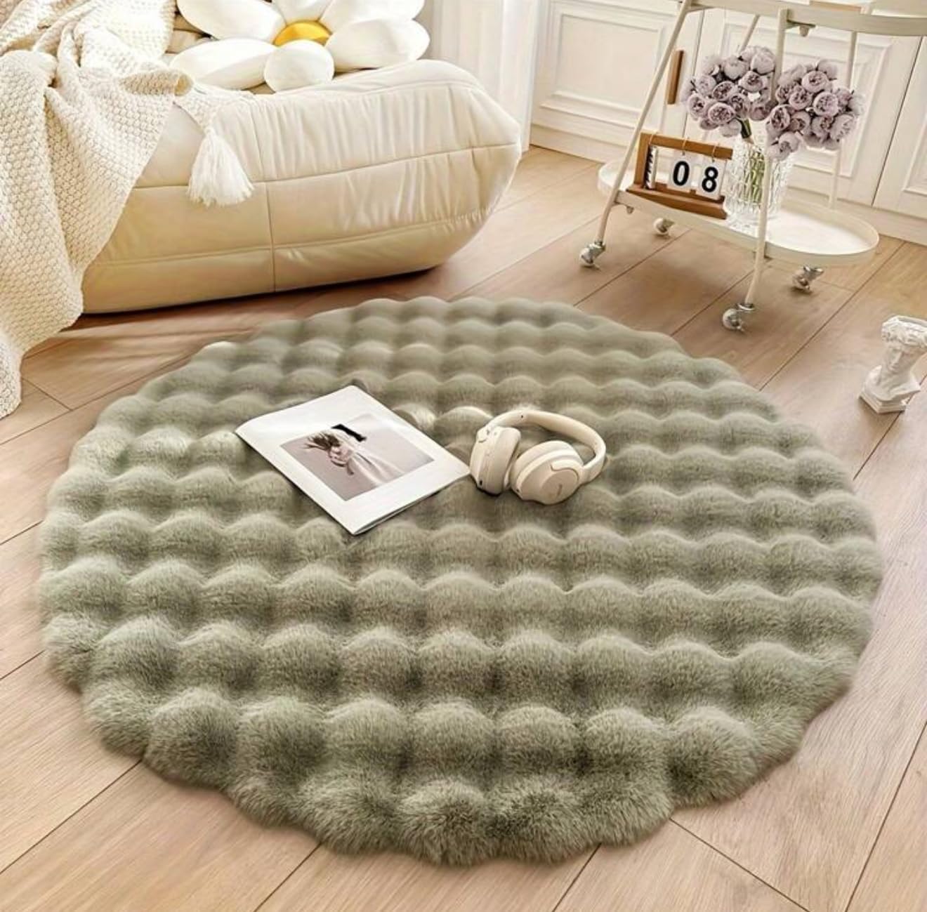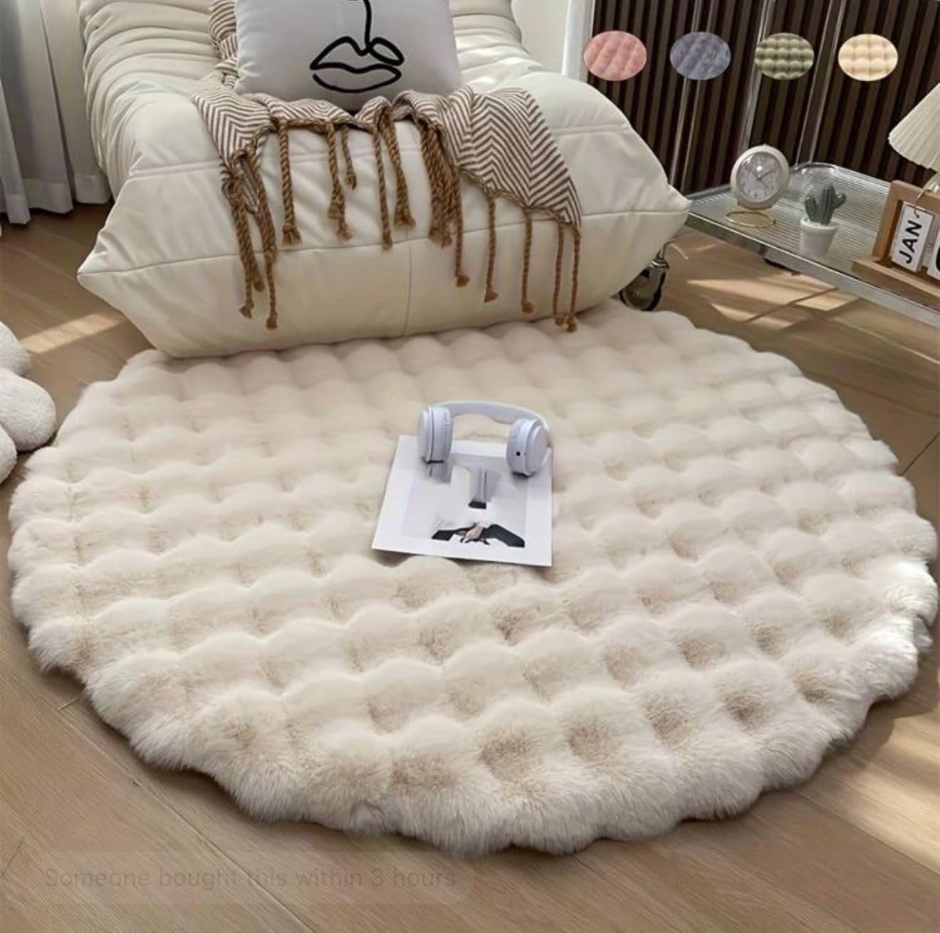 Plush Velvet Round Rug, Soft & Fluffy Simple Solid Color Carpets For Bedroom, Living Room, Closet, And Vanity Area, Multi-Colors Available