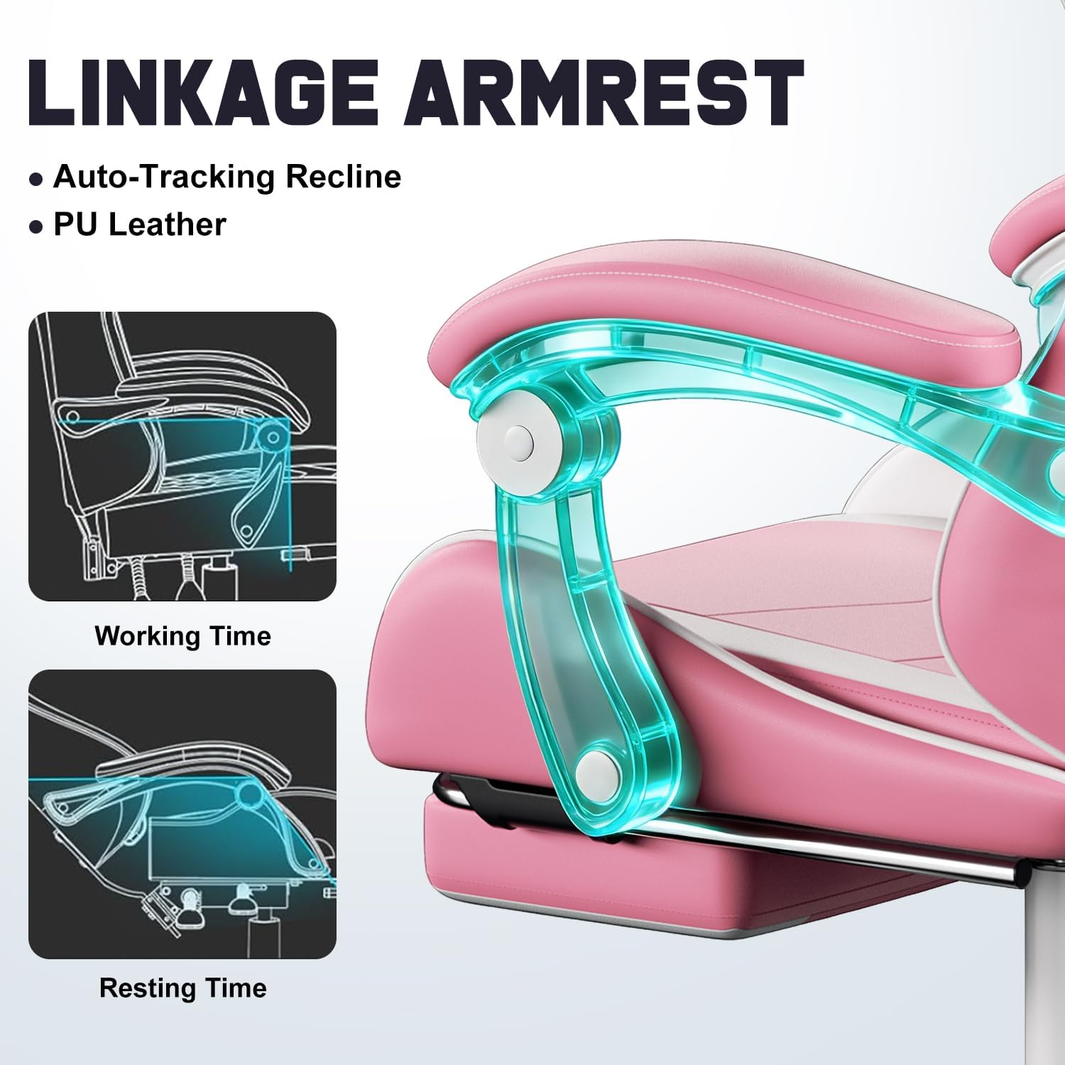 | Additional Features | 360° Swivel with Smooth Rolling Casters, Adjustable Lumbar & Head Pillows, Extendable Footrest, Linkage Adjustable Armrests, Multi-angle Backrest Recline |
