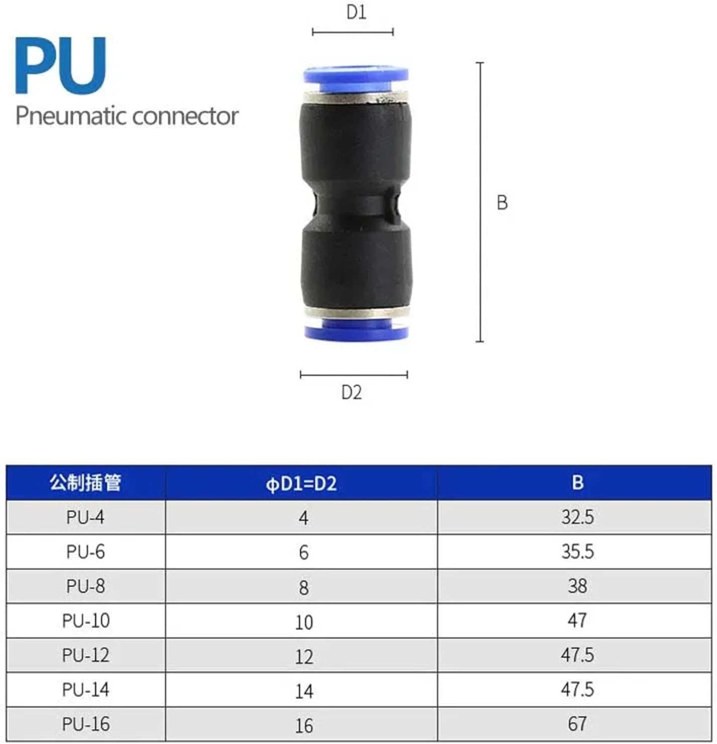 Push-On FittingsPneumatic Fitting Pipe Connector Tube Release Water Hose Plastic 4/6/8/10/12/14mm PU PY Connectors 1Pcs