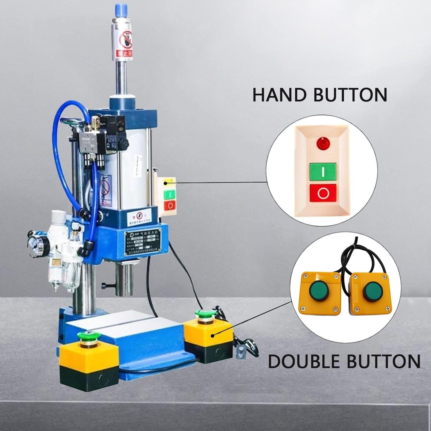 Pneumatic press more hygienic, clean! The use of advanced photoelectric protection technology, can achieve a substantial increase in safety performance, with the computer count and the program, can achieve unattended processing, greatly improving the efficiency of the work.Pneumatic punching machine adapt to electronics, instruments, cameras, jewelry, hardware and clothing, shoes and hats industry; Can be used for thin, strip, coil shear, punching, blanking, forming, bending, riveting and other processes; Suitable for non-ferrous metals, plastic parts, such as processing.Pneumatic presses Allows easy customization of punching speed, stroke, pressure, and time to accommodate different product requirements and models. The working pressure can be seamlessly adjusted between 0.4 and 0.7 MPa to meet specific needs.Parameters:Name: Pneumatic Punch Press MachineVoltage: 110V/220VPower Type: pneumaticPressure: 200 kg / 300kgThe die hole diameter: 1.6 cm /2.0 cmWorking Countertops Size: 15x13.5 cm / 15x15 cmTracheal diameter: 0.8x0.5 cm / 1x0.65 cmAdjustable cylinder size: 6.3x7.5-5 cm / 8x10-5 cmWorking Height: 20 cmOperations pressure: 0.4-0.7 MpaLayout form: verticalUsage Scope: in common useFor industry: in common usePackage contesnts:1 x Pneumatic Punch MachineNote:For your safety, when using manual switches(double button), this product requires both hands to press two manual switches to start the machine.