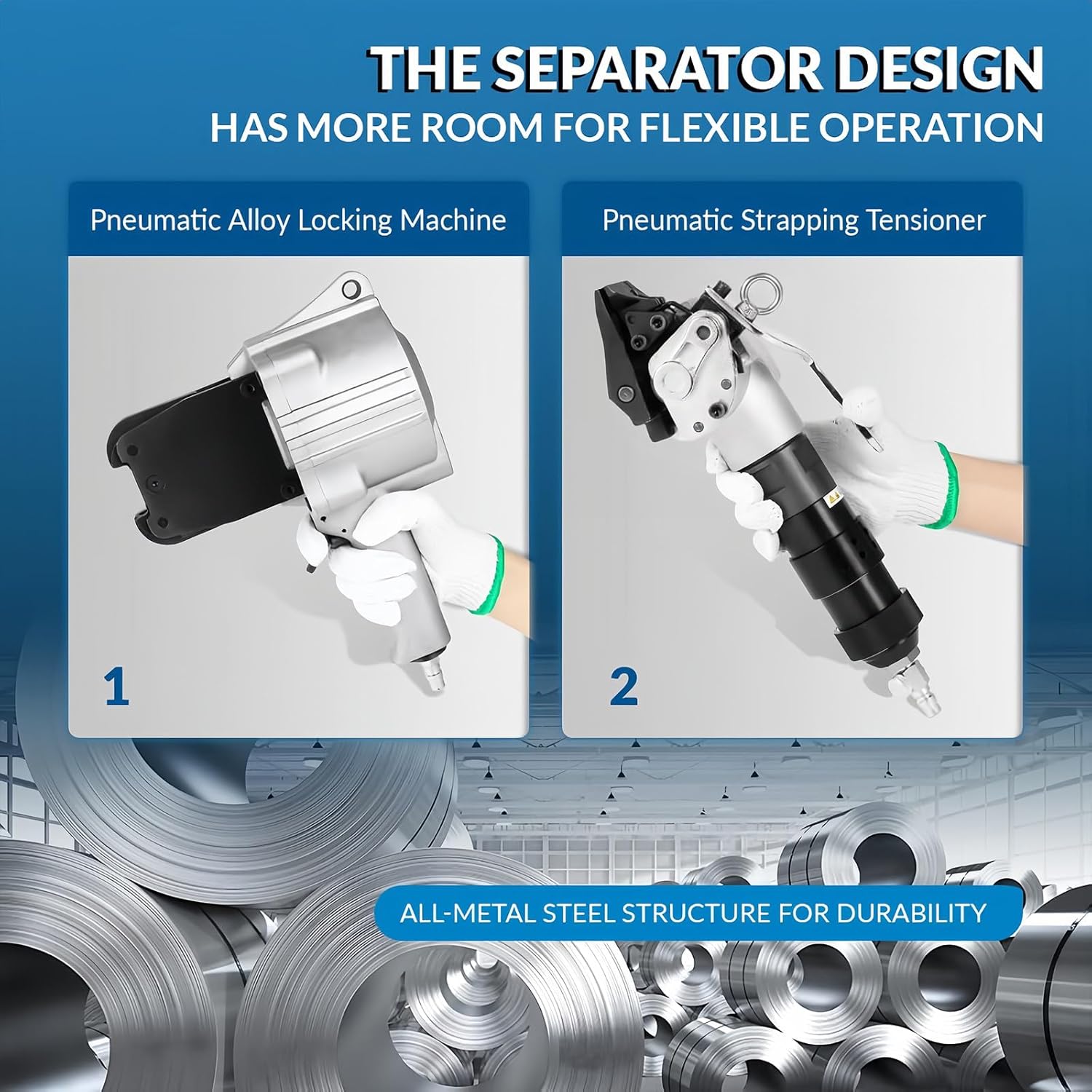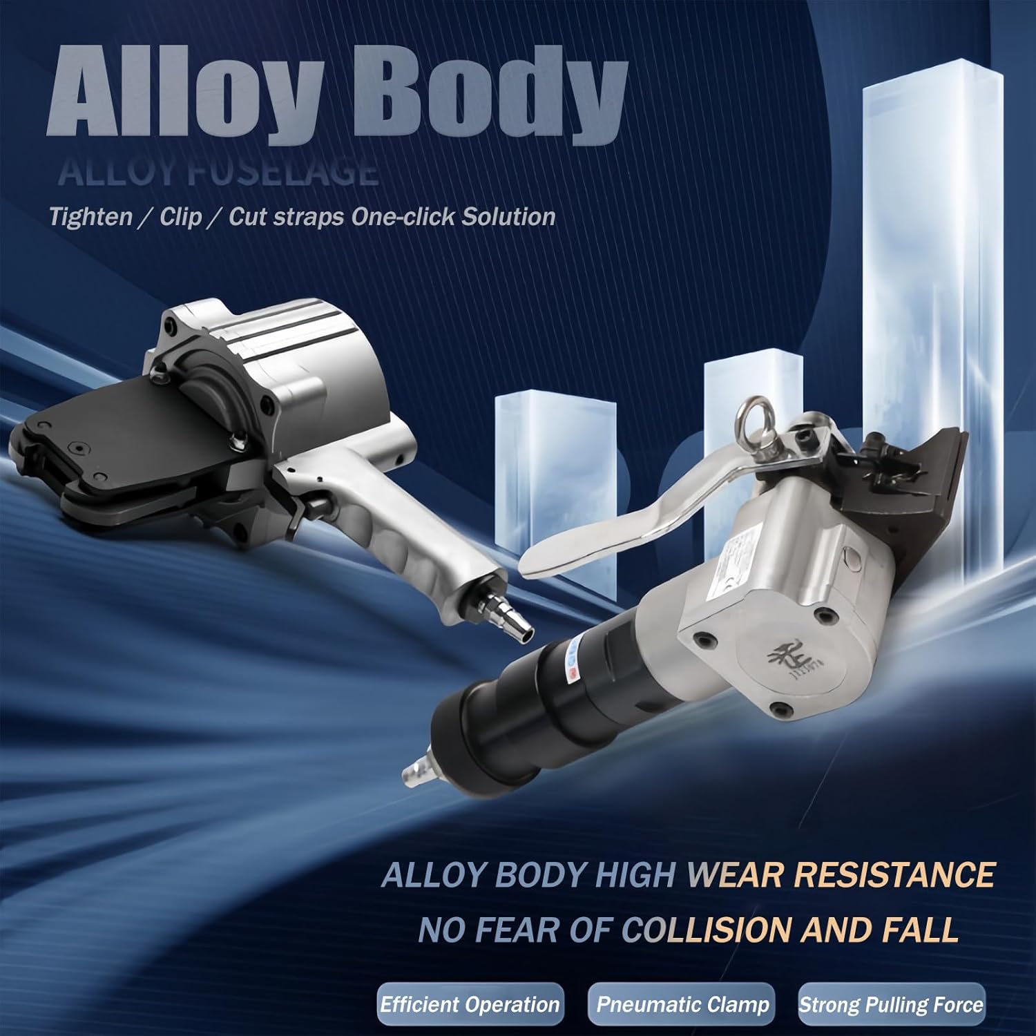 Specification : Product Name: Pneumatic Steel Strapping Tools Strap Material: Steel Work mode: Pneumatic Strap width: 19/25/32mm Air pressure: 0.49~0.63Mpa Tension stress of the seal: 16.8KN Strap thickness: 0.8~1.2mm Tensioning speed: >3-m/min Tension: 8.5KN Weight: 4.8kgPacking List : 1 X Tensioning Machine 1 X Locking Machine 1 X AccessoriesNote: Air compressor and steel buckle are not included. If you have any questions, please feel f ree to contact us and we will reply to you within 24 hours.