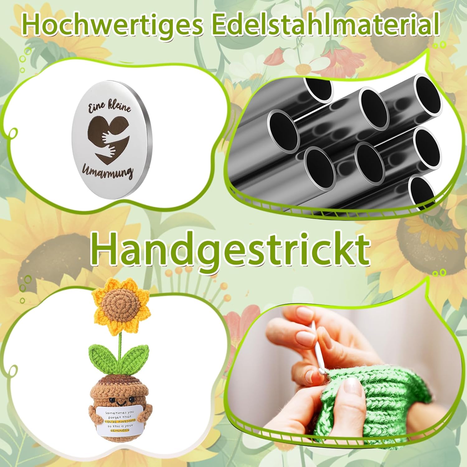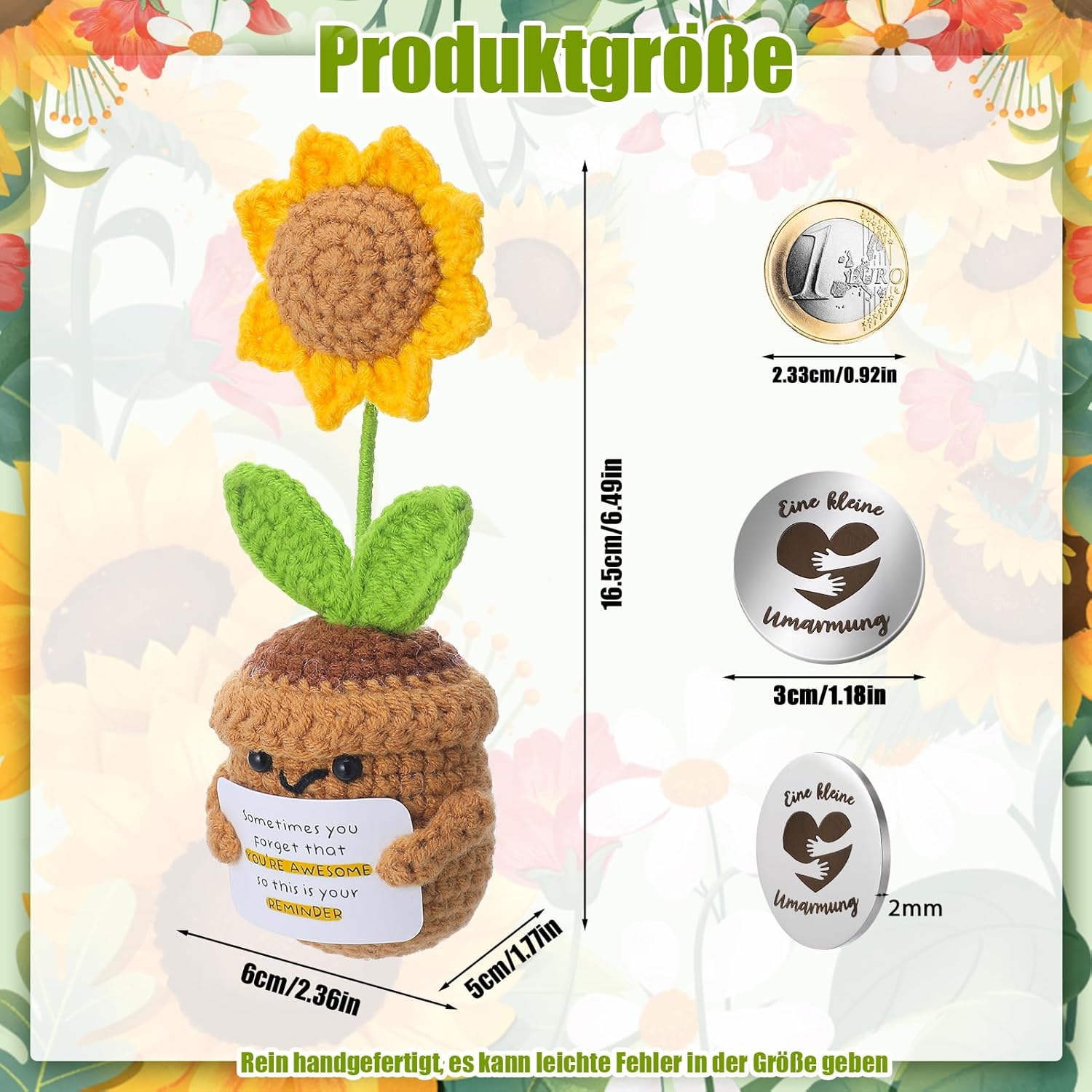 The cute knitted wool sunflower is perfect for women, men, friends, family or even someone who takes an exam. Our positive energy sunflower is made of soft knitting wool and is a real good luck charm for the office or home. With our positive sunflowers, you can wish your loved ones a little cheer up and get well soon!
