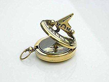 Maritime collectible brass sundial compass. Compass working properly fiend north perfectly. A Great gift for nautical lovers Shiny Brass sundial Compass. With Handmade Leather Case. Material: Brass Finish: Antiqued as per picture. size Inches: 2X2X.75 Centimeters:5X5X2 Size Case:2.5"X1"X2.5" Weight with Case: Kilos: 80grm. Pounds:.17 Handmade Product sold not as an antique.