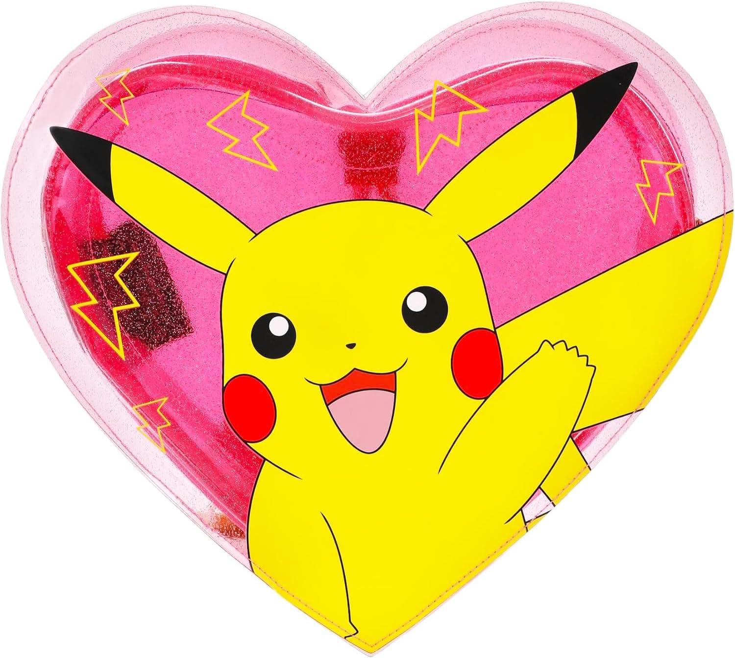 Pokemon Mini Backpack for Adults - Bundle with 12" Heart Shaped Pikachu Backpack Purse for Women Plus Trading Cards, Bookmark | Pokemon Small Bookbag Set. This Pokemon accessory bundle includes a 12-inch clear glitter heart shaped backpack featuring cute artwork of favorite Pokemon character Pikachu. This Pokemon clear backpack is durable and designed to withstand daily use. It's ideal for carrying essentials like your wallet, phone, and more—perfect for on-the-go adventures. Whether you're heading to class, work, or a casual outing, this Pikachu heart shaped purse adds a playful touch to your outfit while providing reliable storage. Officially licensed Pokemon Pikachu fashion backpack for teens and adults also includes 3 Pokemon cards and a Pokemon bookmark. An ideal gift for Pikachu fans on birthdays, holidays, or any occasion.