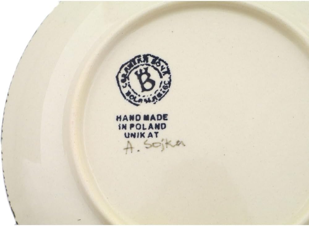 Genuine Polish Pottery handmade in Boleslawiec, Poland. Region celebrated for its long-standing ceramic tradition and artisanal craftsmanship.This authentic, hand-painted Polish stoneware Plate in the Midnight Glow pattern featuring a Signature UNIKAT design is handcrafted by local artisans in Boleslawiec using traditional hand-painting and high-temperature firing techniques for lasting durability and everyday functionality.UNIKAT Signature Design:UNIKAT pieces feature intricate hand-painted artwork signed by the artist and produced in limited quantities, making each one a collectible work of art.Certificate of Authenticity:Includes an official certificate verifying the handmade origin and authenticity of the piece.Care Instructions:Your order includes care instructions and helpful information, especially useful when gifting Polish Pottery.Dimensions:1" high, 7.6" wide, 7.6" long (max outside edge or handle).Certified Polmedia Polish Pottery Features:* Lead & Cadmium Free: Safe for everyday use.* Microwave Safe: Heat food or drinks with confidence.* Dishwasher Safe: Pattern will not fade.* Oven Safe (up to 480F): Excellent for baking and reheating.* Freezer Safe: High-fired stoneware handles temperature changes.* Chip & Scratch Resistant: Durable for daily use.* Hand-Painted Artistry: Decorated by skilled artisans.* Never-Fade Colors: Patterns remain vibrant forever.The Essence of Polish Pottery:For generations, artisans in Boleslawiec have crafted stoneware valued for durability, heat distribution, and long-lasting beauty. This tradition continues today in every piece of Polish Pottery.