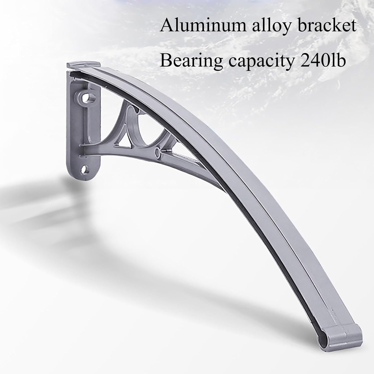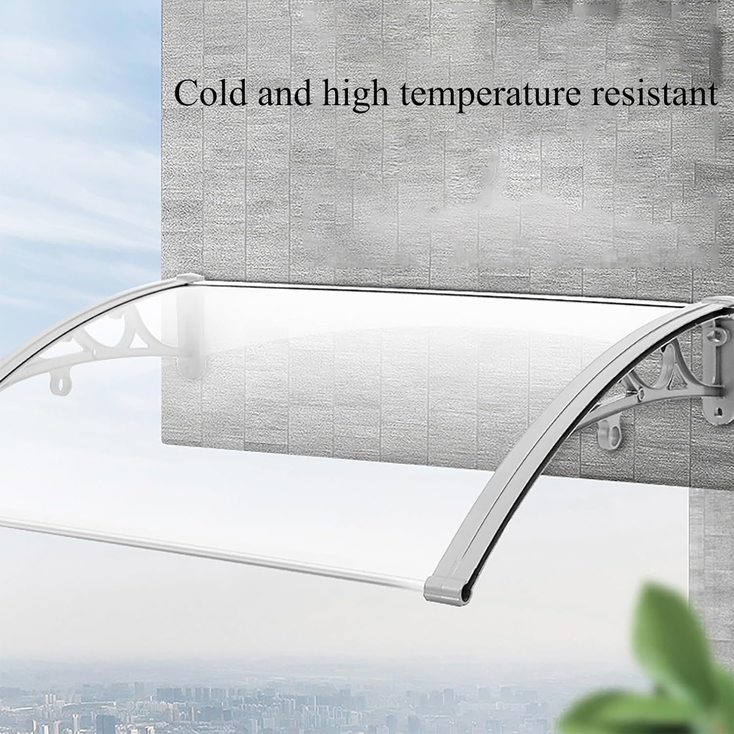 Our window and door awnings are highly regarded because they combine durability, practicality and style.The idea stemmed from our desire to create an awning that would protect people from sun, rain and wind, perfectly avoiding the risk of flower pots falling from heights and hitting you.The elegantly designed side bracket features a swirl design, which not only serves as a place to hang plants or holiday decorations, but also has a specially designed hole for a clothes rod to make your daily life more convenient.You can enjoy the beauty and protection of this front door canopy at an incredibly affordable price.**product information:- Name: Outdoor door and window awnings- Dimensions: Width (protruding size) x length (wall size), can be customized- Panel material: polycarbonate- Panel shape: curved- Panel thickness: 2.5mm/0.1in (solid)-Bracket material: aluminum alloy- Transmittance: 95%- Fire protection: self-extinguishing after leaving the fire- Adaptable temperature range: -40°C - +120°C- Assembly required: 2 people. about 1 hour**Scope of supply:- 1x door and window awning (number of panels: 1, 2, 3, 4, 5)- 1x complete installation accessories (bracket, front aluminum strip, rear aluminum strip, sealing strip, expansion bolts, screws)**Kind tips:1. Please make sure the size fits your window before purchasing.2. It can be easily assembled and installed by referring to the picture.3. It is recommended to install on concrete walls, tile walls, marble walls, wooden walls, solid walls, etc.4. If you have any questions about our door canopy, please feel free to contact us. We will reply and solve your problem as soon as possible.