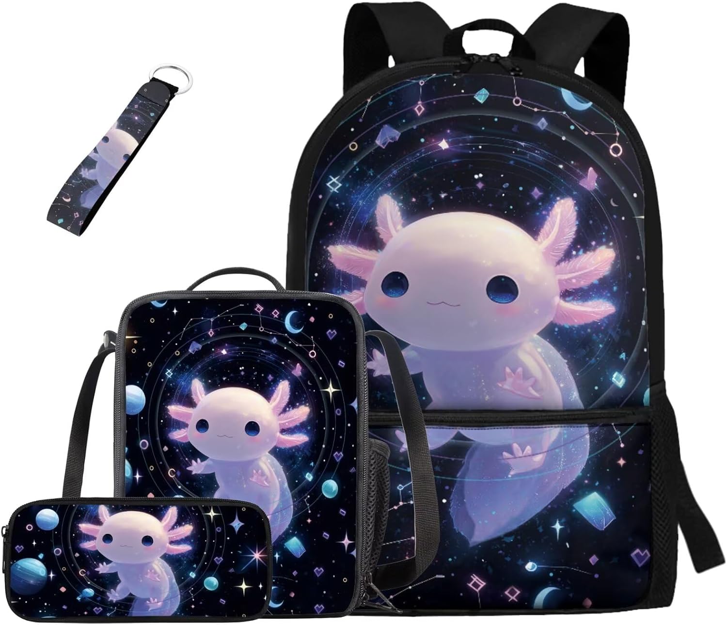 Are you looking for a school backpack set that not only meets all your child's organizational needs but also adds a touch of style and convenience to their daily routine? Look no further! Our comprehensive School Backpack Set is designed with your child's comfort, functionality, and personal expression in mind. This set includes a spacious 17-inch polyester backpack, a handy lunch bag, a practical pen bag, and a keychain. From carrying books, to keeping food fresh and stationery keys organized, it covers all bases. All crafted to make school days easier and more enjoyable. With a range of colors and designs, our backpack set not only looks great but also stands out in the crowd. It allows your child to express their personality while having a practical backpack that meets their school needs. Perfect for back-to-school or as a birthday present, this set is sure to delight. It's a thoughtful and useful present that will be cherished and used daily. Tips: The size may exist 1-2cm measurement error due to the size measured by hand.