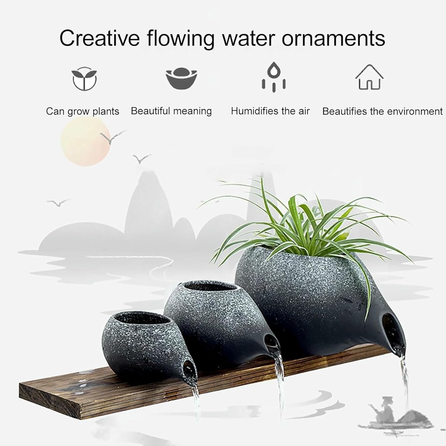 GFXYQPDNV water-circulating fountain is crafted from durable ceramic, offering efficient water conservation and minimal effort. Its open design ensures a smooth and comfortable water flow, creating an exceptional visual effect for your outdoor space.This decorative fountain is versatile, boasting exquisite craftsmanship, a well-designed structure, and a professional aesthetic, making it suitable for most occasions and events, such as banquets, parties, and gatherings.Features:-The ceramic jar can be combined with other water features for a unique effect.-Adding an artistic touch to your garden or patio. The sound of gurgling water brings a sense of comfort and tranquility.-Made of ceramic, it will provide you with long-term use. Widely used indoors and outdoors, it can also be used as a prop for garden photography.-Easy and quick to install, installing a water fountain won't take too long.Specifications:*Name: Garden Sculpture Flowing Water Ornament, Flowing Fish Pond Fountain*Color: Black, Beige*Material: Ceramic*Dimensions: 17*10*8cm/7*4*3in22*12*11cm/9*5*4.3in34*18*17cm/13*7*6.6in*Applications: Whether installed near a garden pool, lawn, farm, patio, or any outdoor area, this fountain is the perfect decorative feature.Packaging Contents:1 x Pond Water Sprinkler
