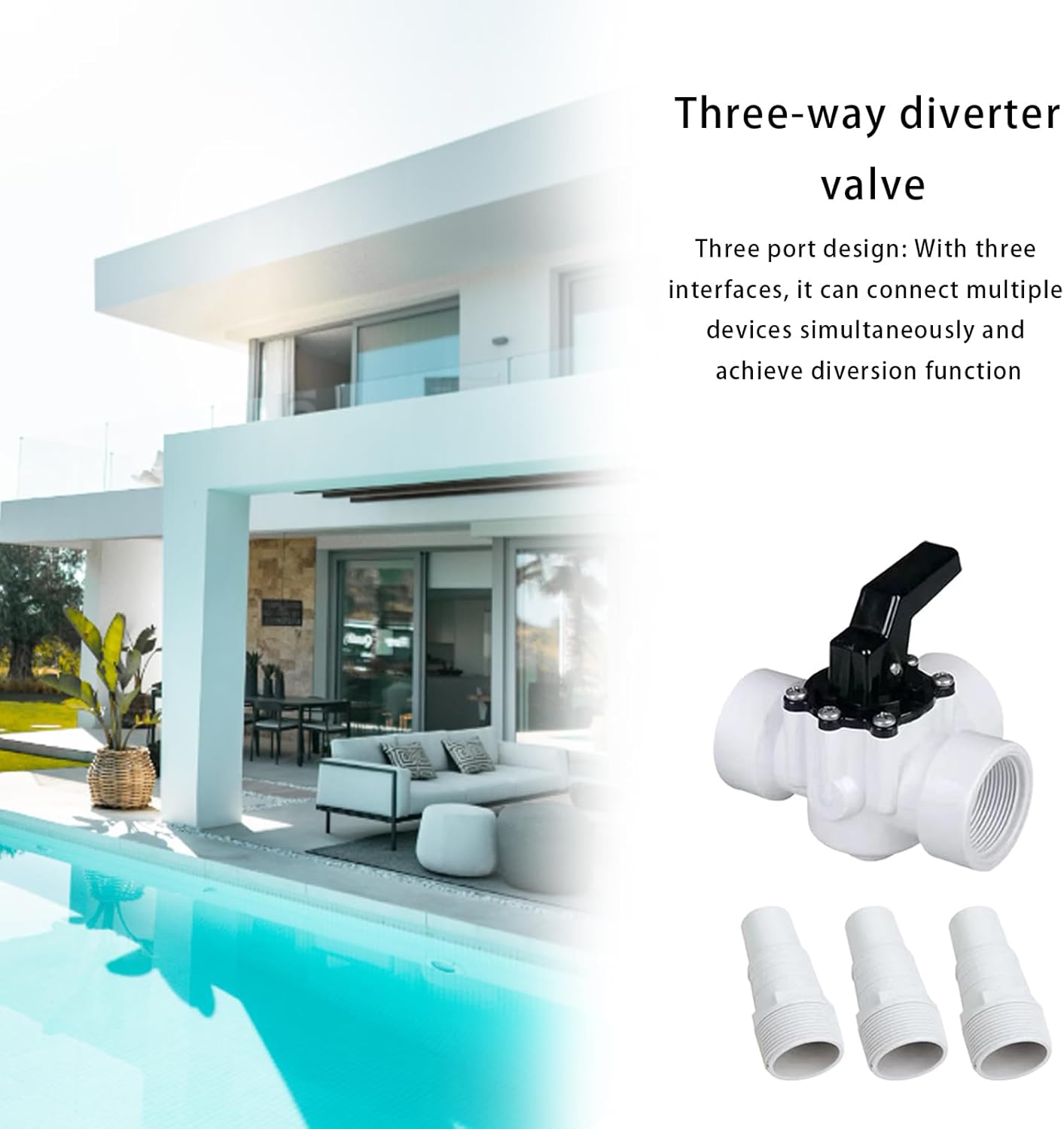 Pool Accessory 3 Way Hose Valves Connector Pool Hose Connector Heat Pumps Regulation Valves Suitable for Pool EquipmentFeatures:Enhances your pool maintenance with three way valves pool pumps connection hose fitting, a must have for efficient water flows control in your swimming pool This 3 way Divides valves is designed for easy connection, ensuring compatibility with wide ranges of pool pumps, and heating equipment.Perfect for pool owners, enthusiasts, and maintenance professional a to manage their swimming pool's water circulation and heating systems.Whether you're upgrading your home pool setup or optimizing a commercial pool's heating efficiency, this valves provides seamless integration with vacuums and other pool accessories.Streamlineing your pool's functionality with this robust constructions valves, offering installation that keeps your pool water clear and perfectly heated all season long.Specifications:Texture: Size As Picture ShowsPackage Includes:1Set Three-Way Pool Valves and Hose FittingNote:Please allow 1-2cm errors due to manual measurement.Due to the differences between different monitors, the picture may not reflect the actual color from the item.
