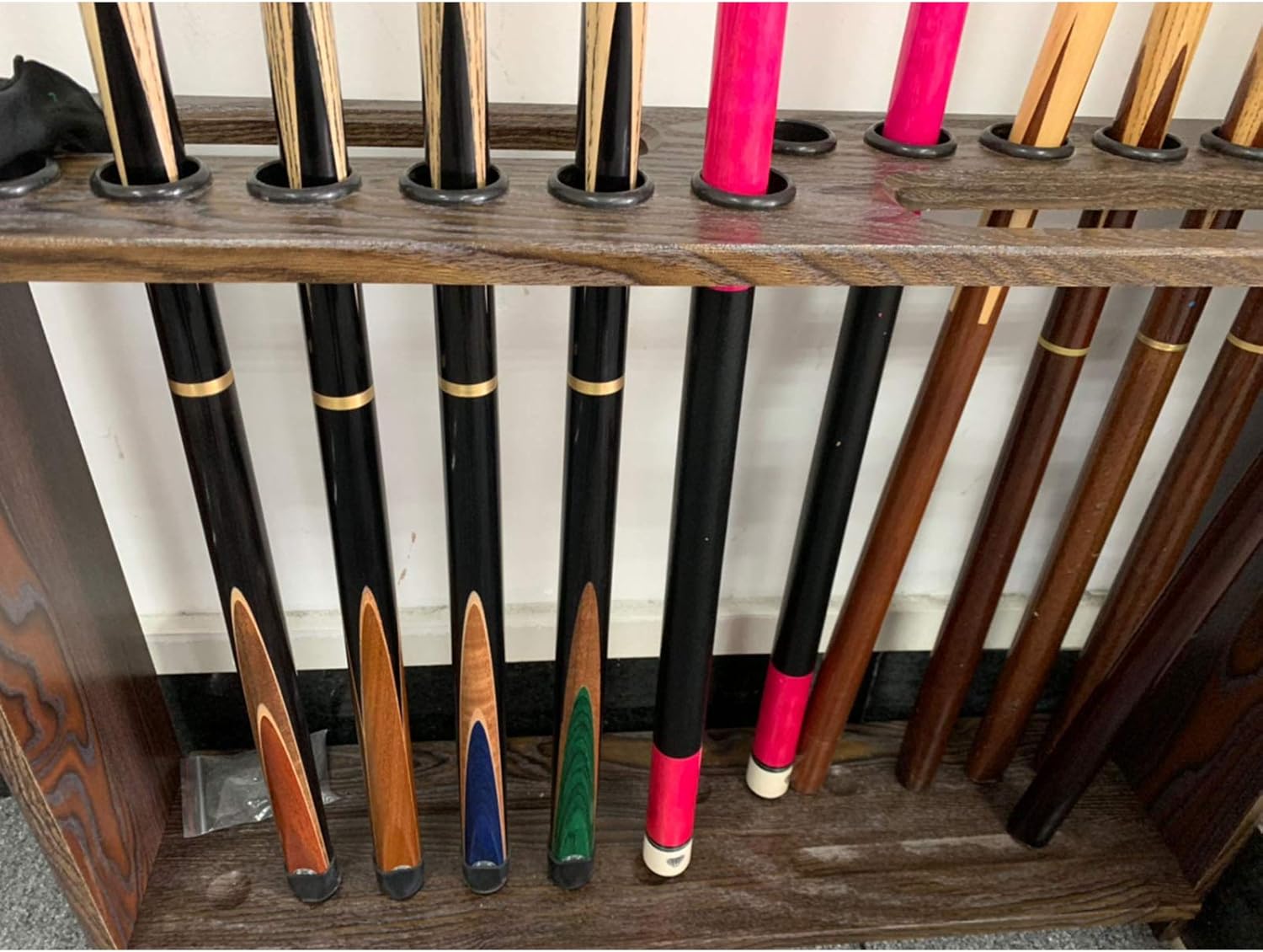 12 Pool Holder, Racks,12 Hole Pool Racks,Billiard Stick Wall Rack, Billiard Pool Rack, Suitable for Gym Play Centers/Public Entertainment/Home Billiard Accessories 581773Cm Features: the Shelf Has Drilled Screw Holes, Only Need to Correspond to the Upper Plate, the Lower Plate and the Support Rod in the Middle, Tighten the Screws to Use the Billiard Frame is Assembled from HighDensity Plates, with High Hardness, Not Easy to Deform, Waterproof and MoistureProof, and Stable Structure the Groove Design on the Bottom Plate Corresponds to the Hole on the Upper Plate to Prevent the Club from Slipping, and Can Accommodate 12 Clubs, 1 Tripod and Ball Smooth Appearance, Practical and Decorative, Can Store Billiards, Fishing Rods and Balls Bionic WoodGrain Sticker Facing, Using Blister Molding, HeatResistant, WearResistant, ScratchResistant, Easy to Clean Contents: Holder X 1