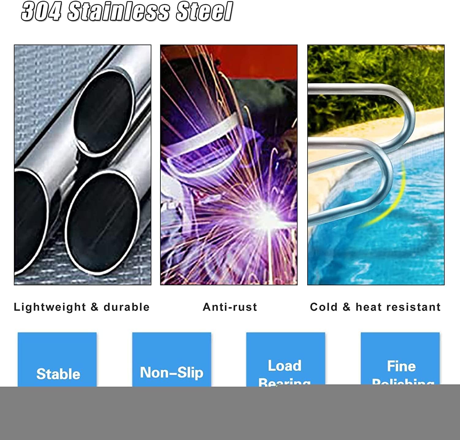 Safety Swimming Pool Entrance Handrails Spa Stair Handrails The pool handrail will reduce slippery and the risk of falling.It is perfect for assisting children,seniors,and handicapped people when entering or leaving the pool. Product Features: 316 stainless steel Thickened pipe wall Fashionable Fine polishing Safe and non-slip Does not rust Package Included: 1 x Swimming Pool Handrail 1 x Accessory set Installation method: Installation: It can be locked with expansion screws,without pre-embedded drilling,easy installation,stable and firm,and does not affect the appearance of the escalator Attention: 1.The size of the product is manually measured,there may be an error of 1-2 cm,the actual product shall prevail. 2.If you need other styles, please contact me, our store has a variety of styles and colors, you can view my store. 3.We believe that we can meet your needs with high quality products. If you find any problems with our products, please feel free to contact us by email to resolve the issue.