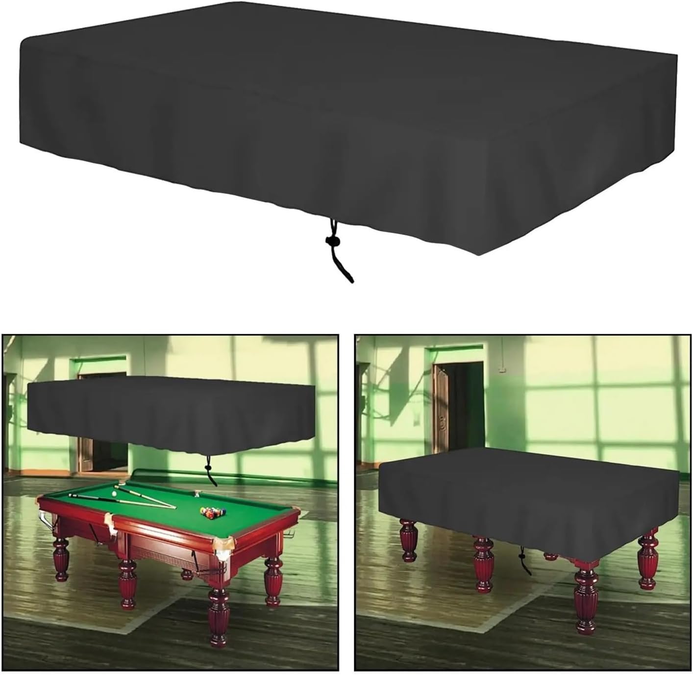 General Installation and Care Tip: Before covering, ensure the table surface is clean and dry. Drape evenly, allowing the weighted corners to settle naturally. Clean spills immediately with a damp cloth; for deeper cleaning, wipe with mild soap solution and air dry. Fold loosely for storage, avoiding sharp creases that could stress the material over time.Material: Oxford ClothSize Chart:7FT: 228cmx132cmx20cm/89.76inchx51.97inchx7.87inch8FT: 254cmx140cmx20cm/100.00inchx55.12inchx7.87inch9FT: 284cmx157cmx20cm/111.81inchx61.81inchx7.87inchPackage Includes:1 Billiard Pool Table CoverNote:Please allow slightly errors due to manual measurement and different monitors.