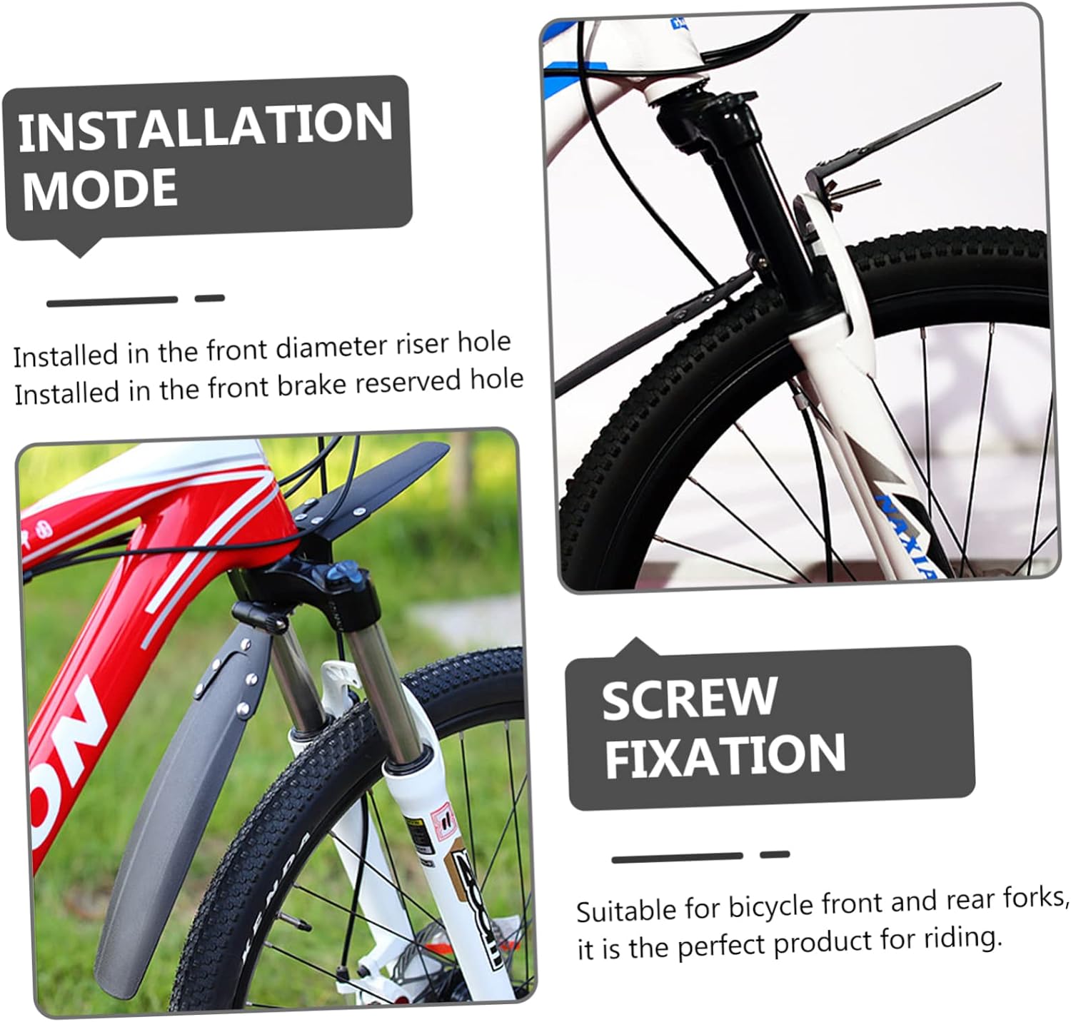 Package Include 1 x set of mud guards Characteristics - Size: About 53.00X8.50X5.00cm/ 20.83X3.34X1.97inch plastic front mudguard. - Color: Black mudguard for bike. - Material: Plastic bike mudguard. - Prevent mud, sand, dirty water splashed on your bike body, keep you and your bike clean rear mud guard bike. - Wide application. It is suitable for a variety of mountain bikes or road bikes mountain bike mud guards. - your clean and service time guard. - The excellent workmanship of this bike mudguard will bring you a experience mud guard for bikes. - The bike mud guard is easy to use and install, bring much convenience to you bike front guards.Goods Descriptionplastic front mudguard material can ensure its durability and practicability.bike mud guard This item is a set of bike mudguard, manufactured with , so that it .bike rear mud guard It is suitable for front and rear wheels of a bicycle